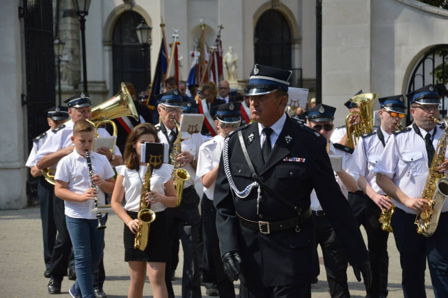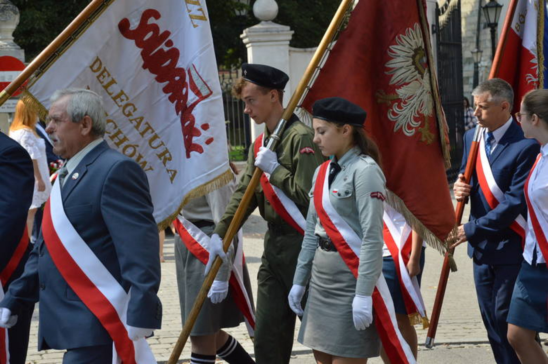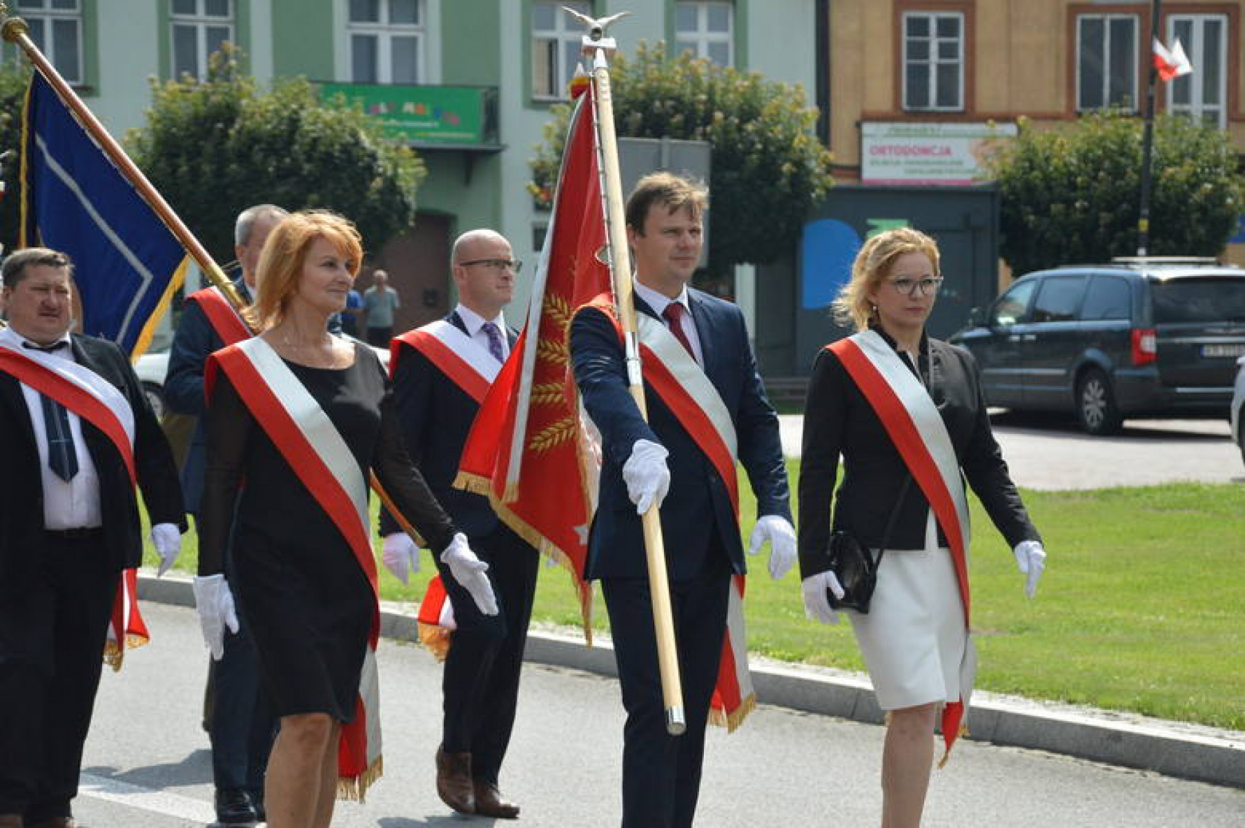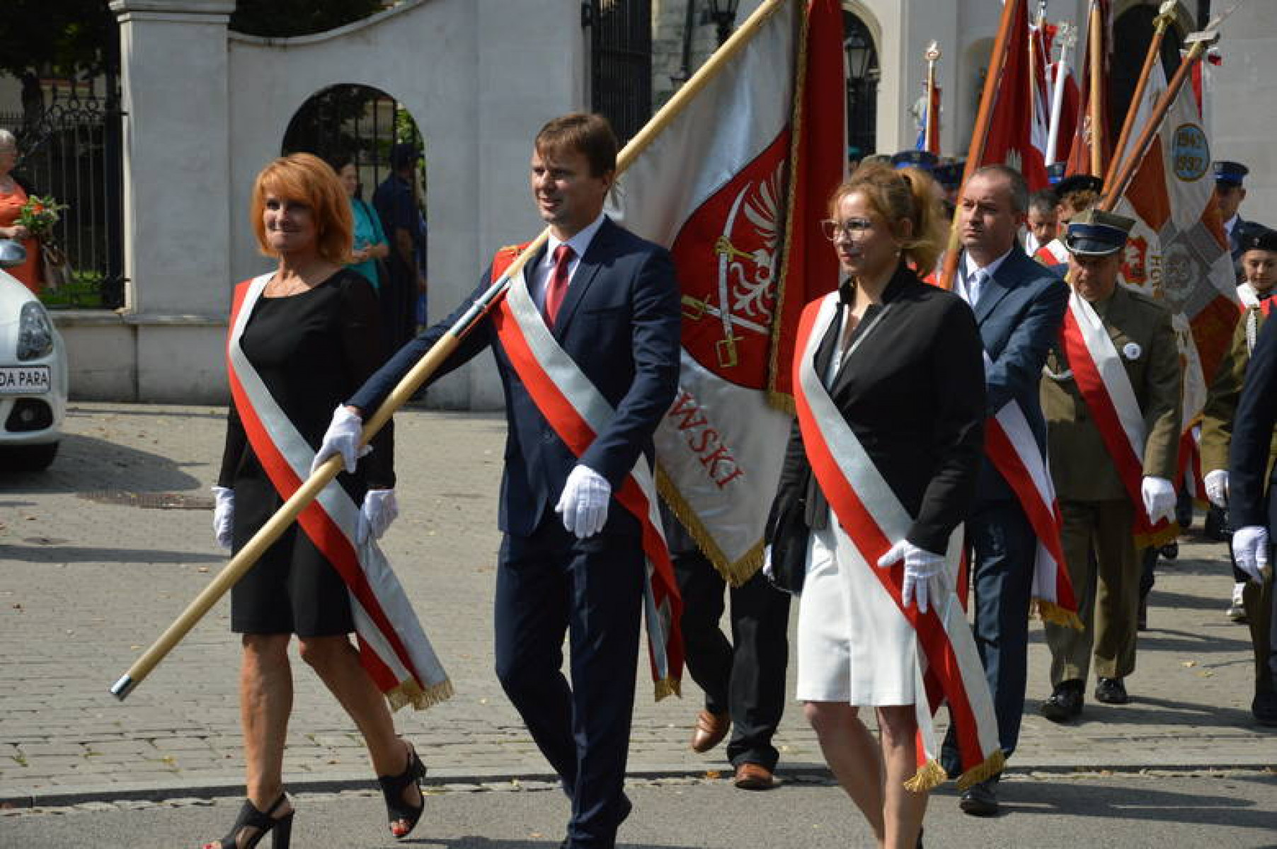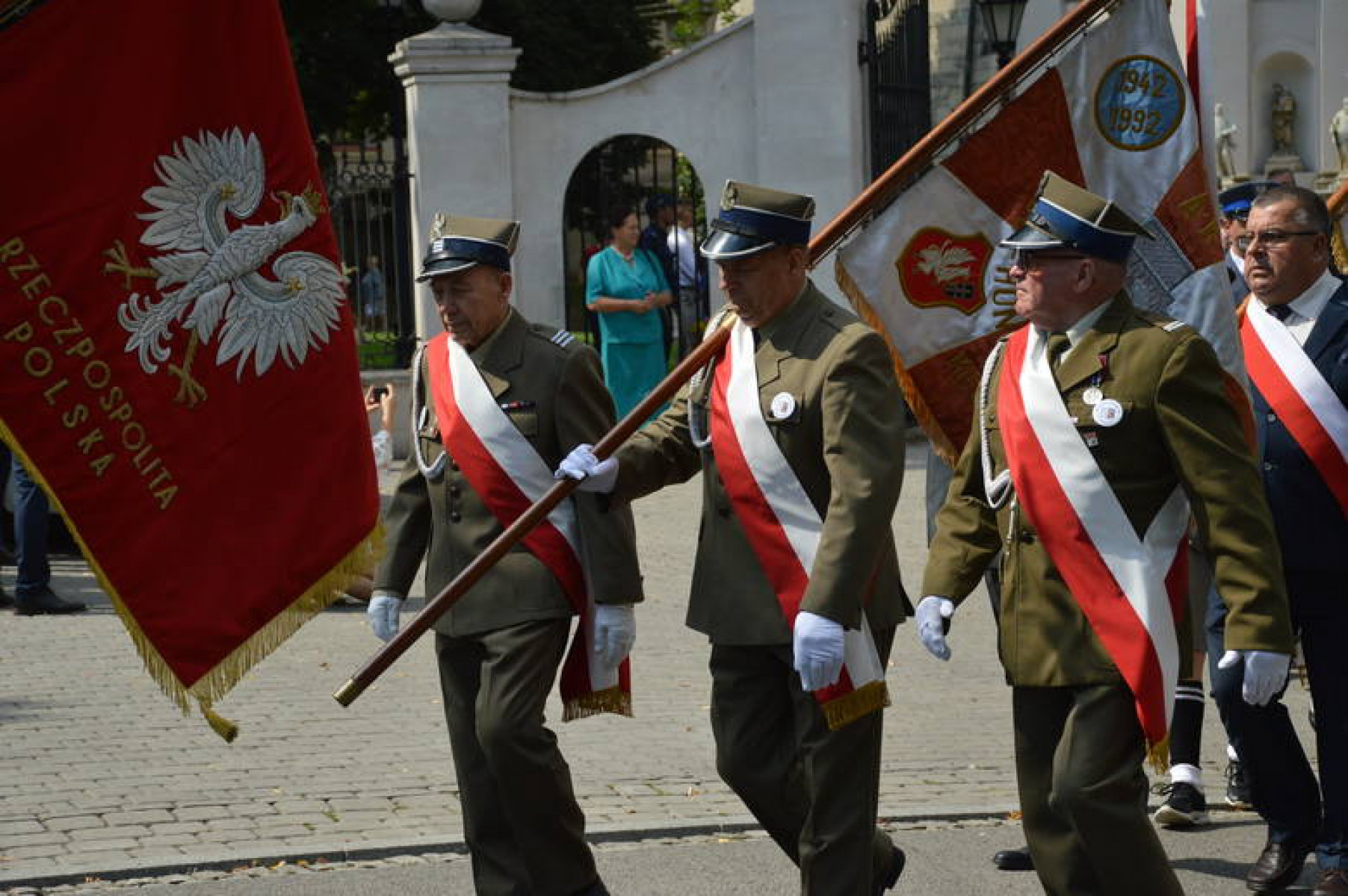 Święto WP Miechów 2019 - poczty na czele ze sztandarem powiatu miechowskiego