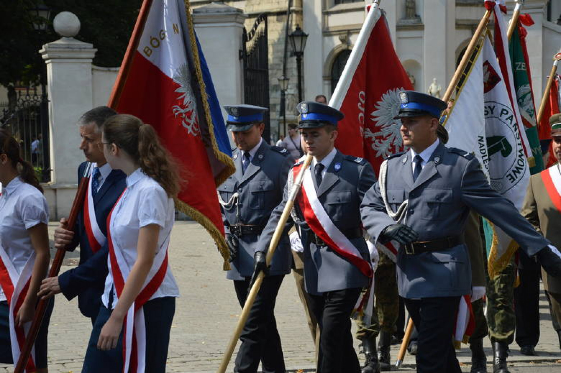 Święto WP Miechów 2019 - poczty sztandarowe w tym Policji