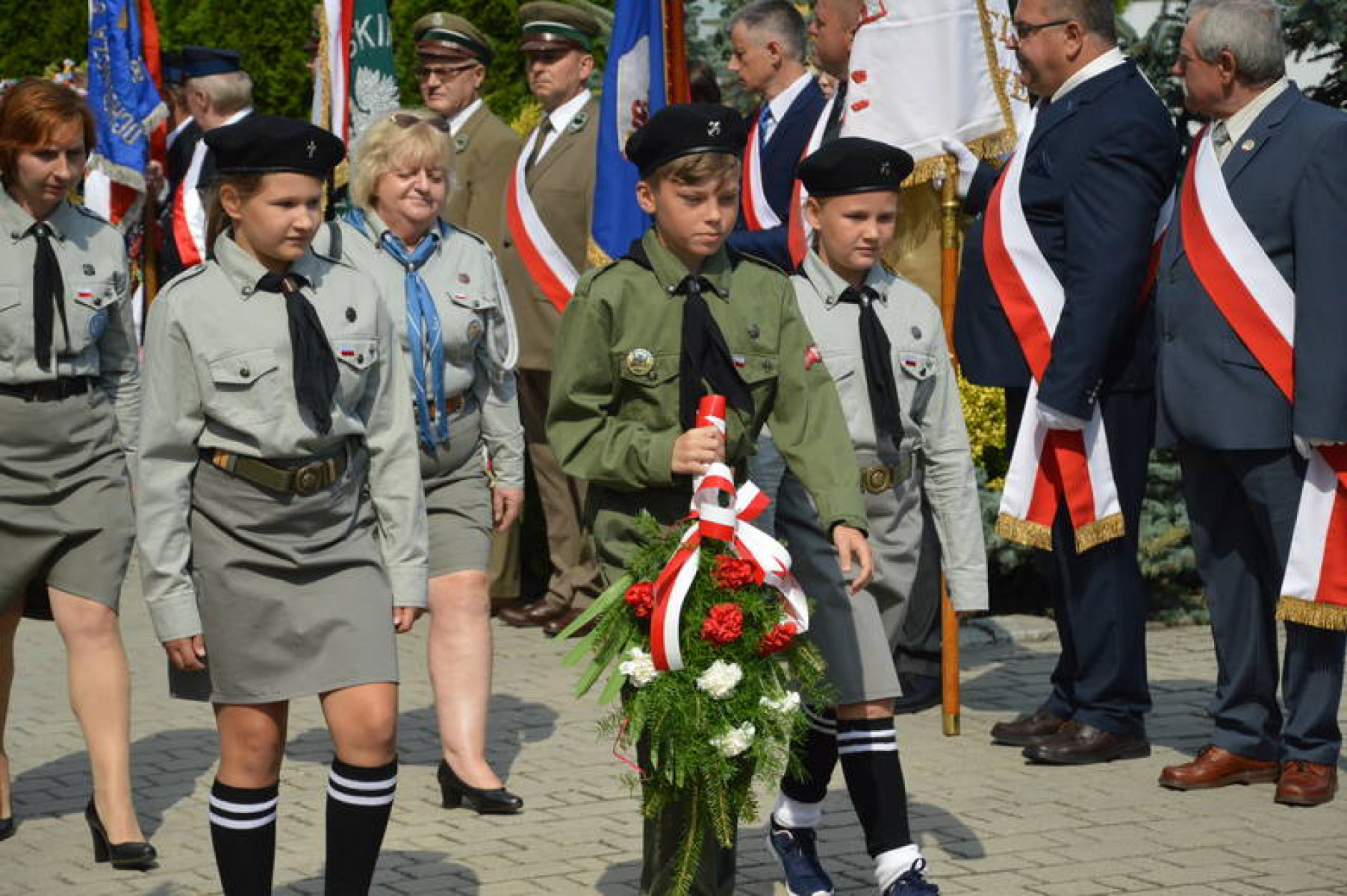 Święto WP Miechów 2019 - składanie kwiatów przez harcerzy