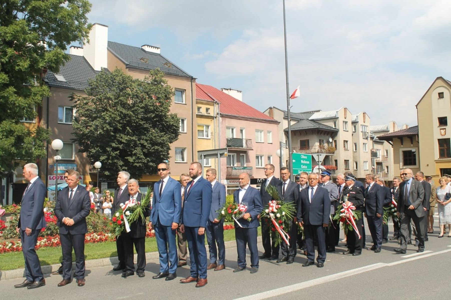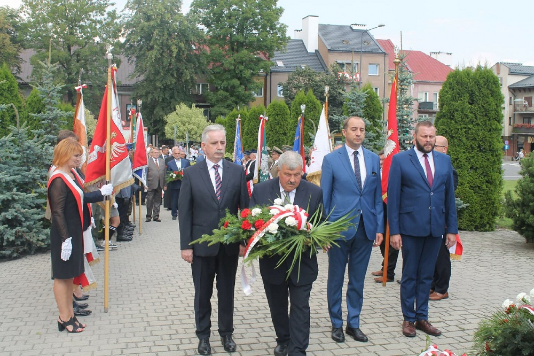 Święto WP Miechów 2019 - przedstawiciele władz państwowych, samorządowych, różnych organizacji w kolejce do składania kwiatów
