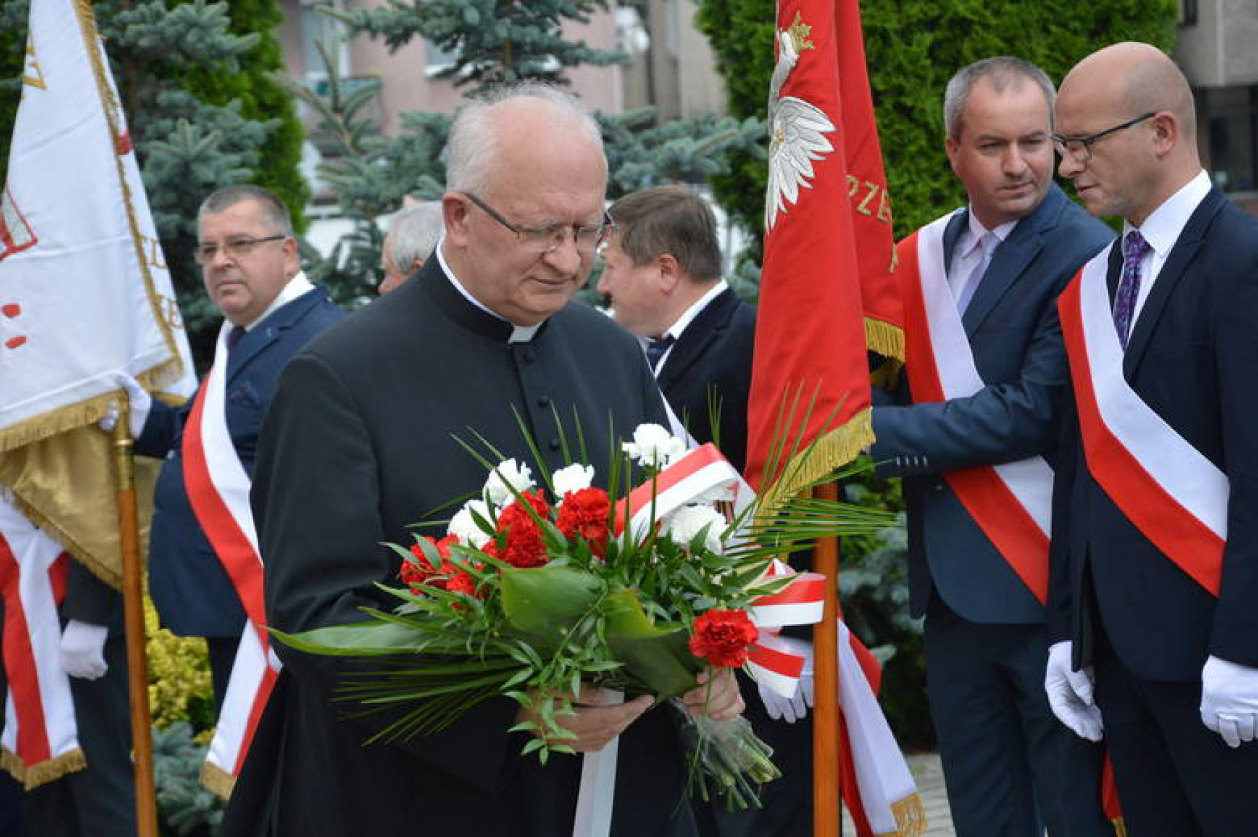 Po uroczystej Mszy św. w Bazylice Grobu Bożego, którą odprawił ks. proboszcz Franciszek Siarek, poczty sztandarowe, harcerze, dzieci, młodzież, gospodarze święta i goście, w asyście Orkiestry Dętej „Sygnał” przeszli pod Pomnik z Orłem, gdzie złożyli wiązanki kwiatów składając hołd wszystkim służącym i poległym w obronie Ojczyzny.