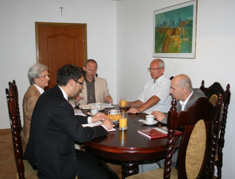 (...) widzom i słuchaczom Małopolski - to tematy rozmowy w Starostwie Powiatowym w Miechowie pomiędzy szefami krakowskich mediów a przedstawicielami powiatu. W rozmowie uczestniczyli: Bogdan Wasztyl, dyrektor Oddziału TVP Kraków, Mariusz Süss, kierownik Biura Marketingu i Reklamy krakowskiej telewizji oraz Janusz Rząca, przewodniczący Rady Programowej Radia Kraków. Gości podejmowali: Dariusz Marczewski, członek Zarządu Powiatu i Ryszard Nasada, rzecznik prasowy. - /Telewizja jest medium otwartym na współpracę z samorządami/- zapewniał dyrektor krakowskiego Oddziału Telewizji, a szef marketingu mówił o preferencjach dla problematyki terenowej. Gości przekonywano do większego zainteresowania mediów północną częścią Małopolski, w tym powiatem miechowskim, w którym nie brakuje interesujących tematów, efektów pracy samorządowców i ciekawych ludzi. Udanym przykładem przybliżenia powiatu miechowskiego Małopolanom był blok programowy emitowany w styczniu br. na falach Radia Kraków. Omówiono możliwości dalszej medialnej promocji miechowskiej bazyliki Grobu Bożego, jako szczególnej atrakcji tej ziemi, a także imprez plenerowych, które już są znane poza granicami powiatu (Wybory Chłopa Roku, Dni Kapusty Charsznickiej, Zlot Kawalerów Virtuti Militari). Dyskutowano także o wyprodukowaniu filmu promocyjnego popularyzującego walory powiatu miechowskiego. Przedstawiciele mediów zadeklarowali, że radio i telewizja będą częściej gościć w Miechowie i powiecie w poszukiwaniu i relacjonowaniu niebanalnych tematów, wartych spopularyzowania w województwie. Obie strony wyraziły chęć wzajemnej współpracy i otwartość na wspólne inicjatywy medialne. Przy okazji wizyty goście zwiedzili centrum miasta i bazylikę, zabudowania poklasztorne i Galerię BWA ,,U Jaksy".