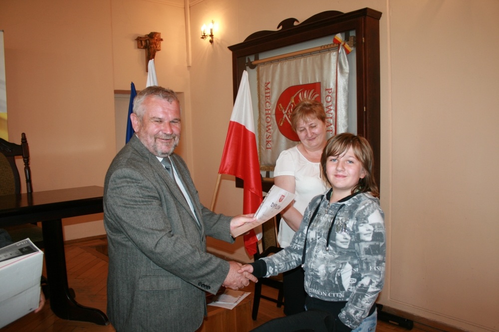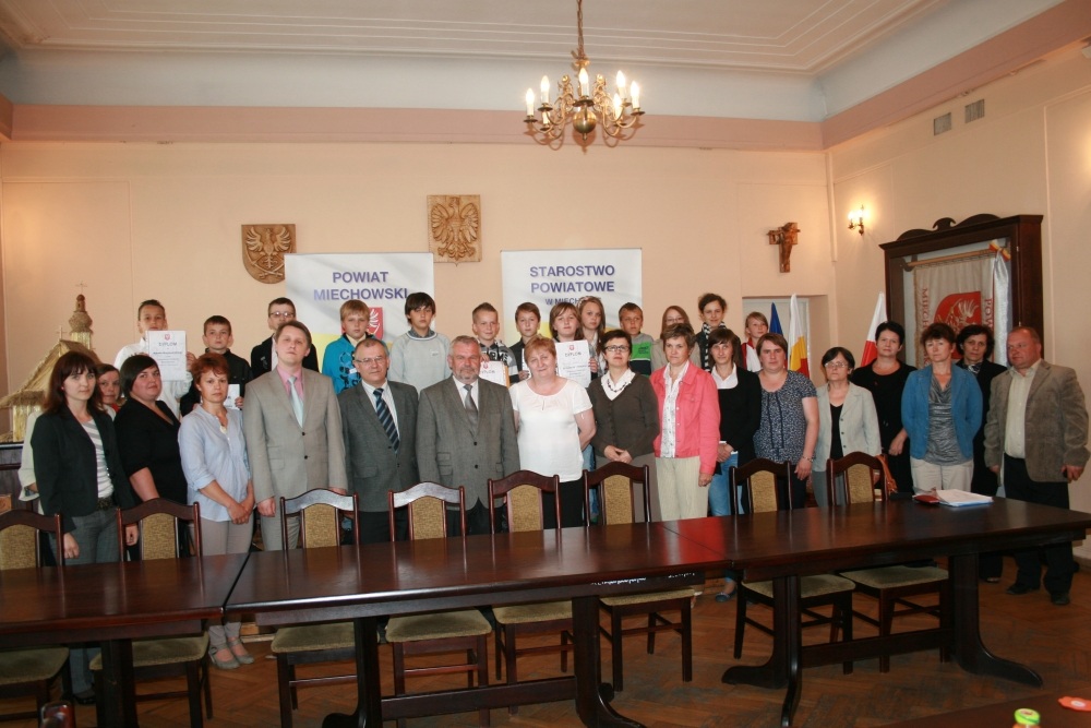 (...) Drugie miejsce zajął Sebastian Kałwa – SP Szreniawa, gm. Gołcza, zaś III m. uzyskał Jakub Biernacki – SP Nr 2 w Miechowie. Najlepsza trójka została wyłoniona spośród trzynastki finalistów na podstawie testu zadań. Oprócz trójki zwycięzców byli to: Michał Bańbuła, Wiktor Bogusz, Iga Kisiel, Jakub Kłak, Ewelina Kowal, Aleksandra Kruszec, Karol Krzykawski, Paweł Malmur, Jakub Masny i Katarzyna Michta. Sukces zdolnych dzieci to także sukces pedagogów – matematyków, który zostali przez starostę Mariana Gamrata i naczelnika Wydziału Oświaty, Kultury i Sportu Leonarda Mazura uhonorowani wyróżnieniami.