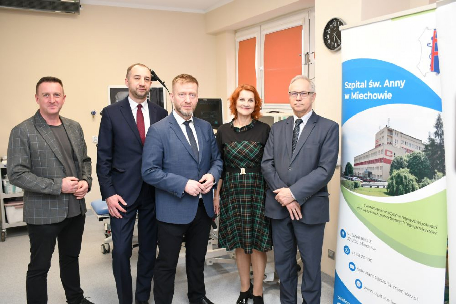 Włodarze województwa i powiatu miechowskiego na otwarciu zmodernizowanej pracowni w miechowskim szpitalu