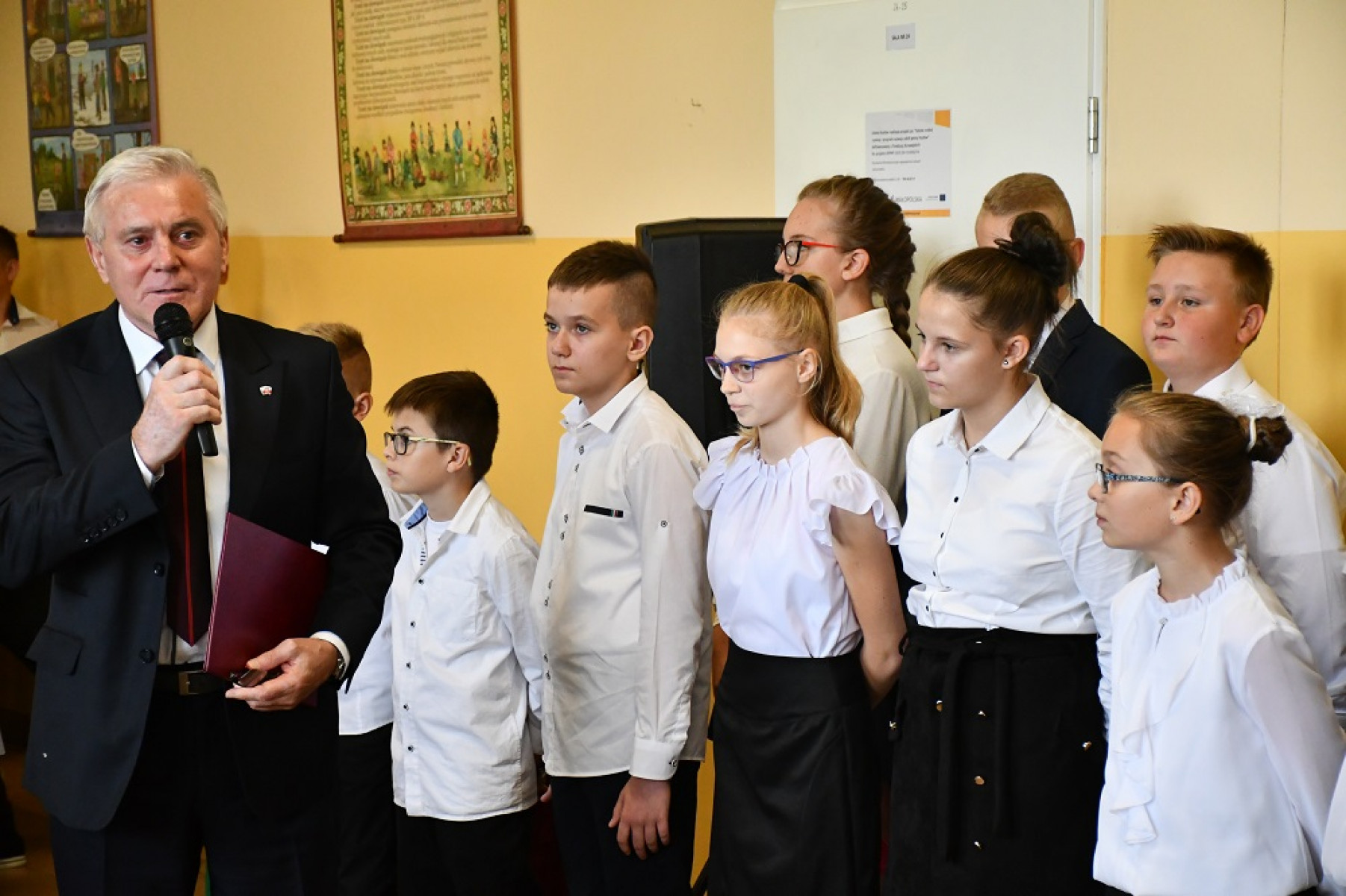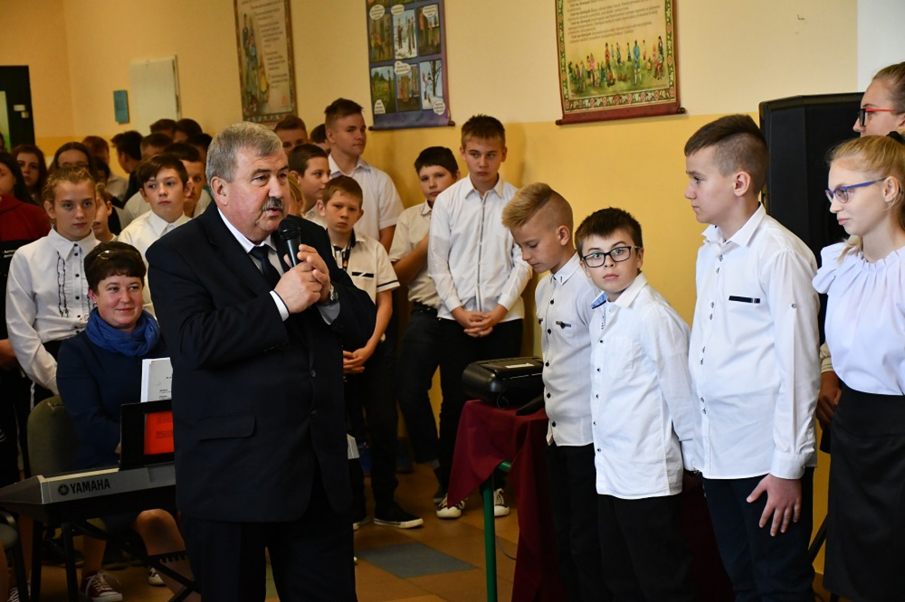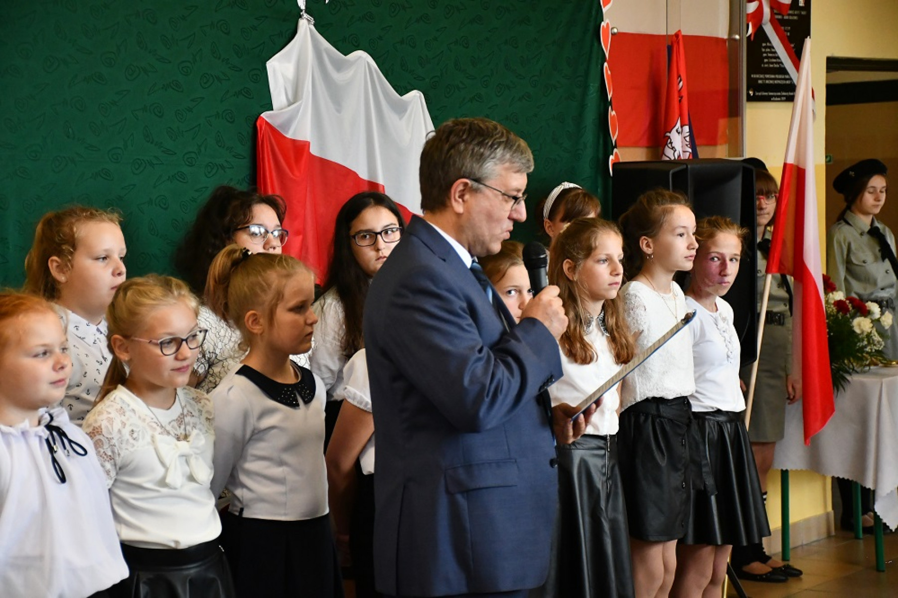 Starosta Jacek Kobyłka dziękował za wspaniałą lekcję historii. Mówił o zasługach tych wymienionych na tablicy oraz tych niewymienionych, dzięki którym dziś możemy żyć w wolnej Polsce i spotykać się przy okazji takich wydarzeń jak w Kozłowie. Starosta dziękował również dyrektorowi i nauczycielom za włączenie do programu wychowawczego elementów miejscowej historii.