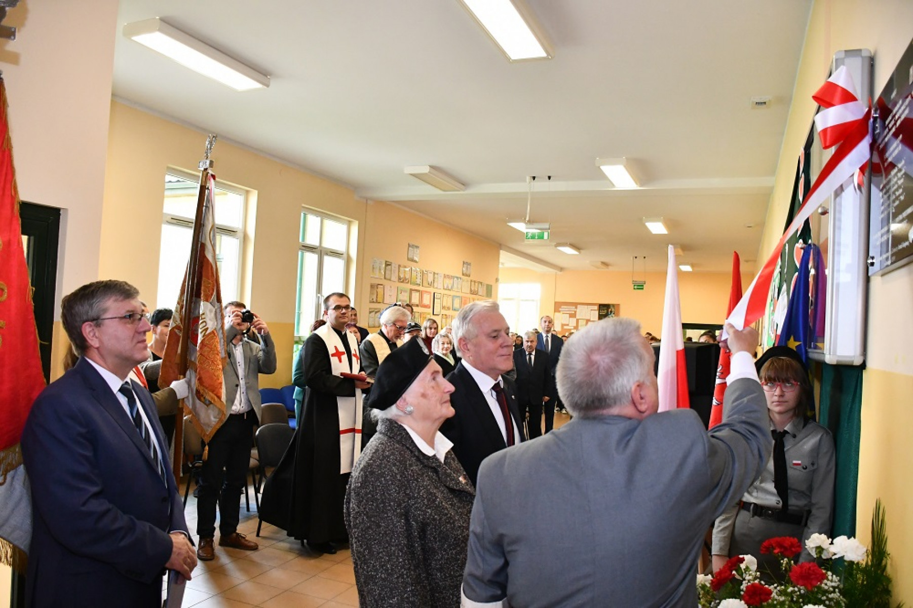 Uroczystość odsłonięcia tablicy pamiątkowej AK w Szkole Podstawowej w Kozłowie