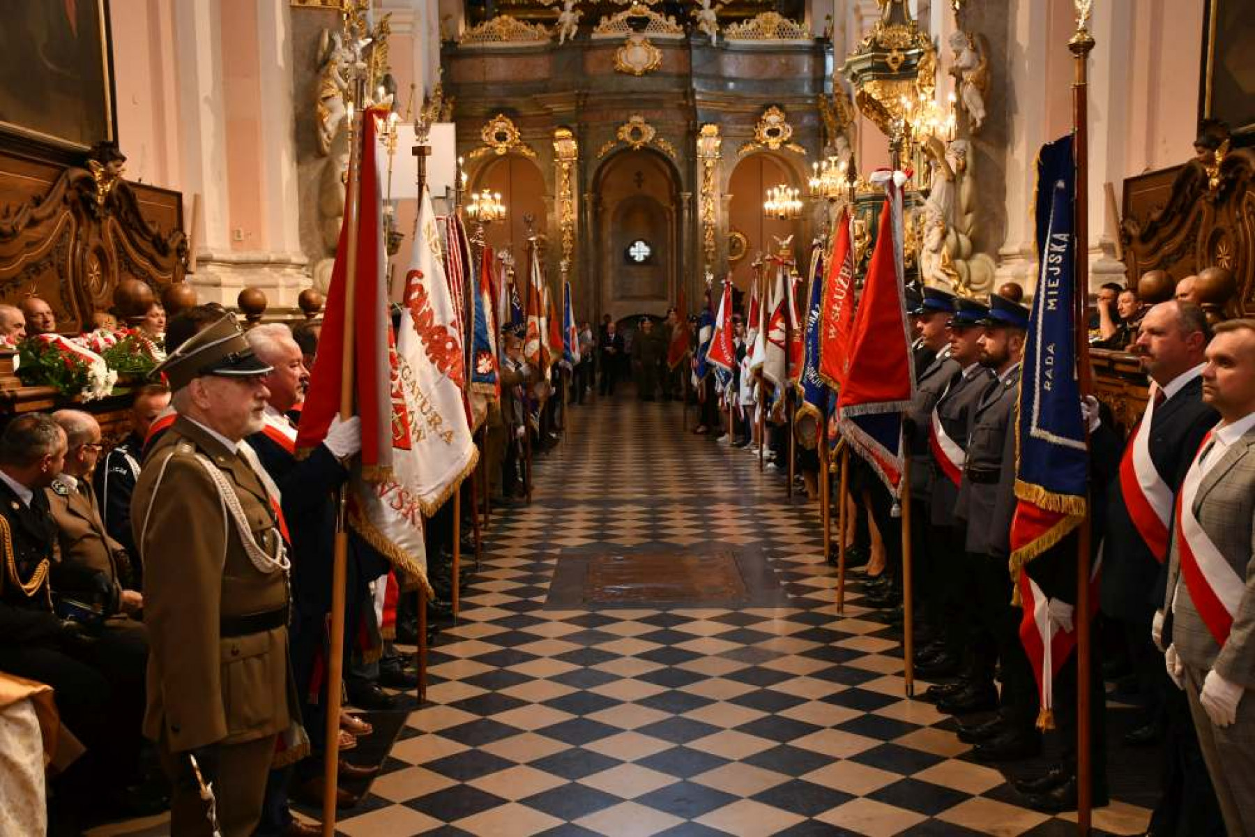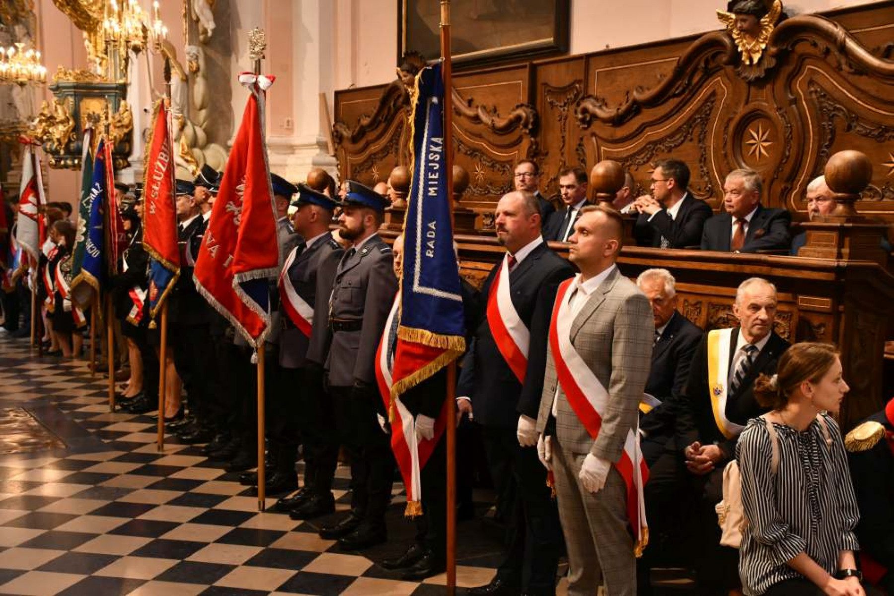 Miechowskie Święto Uchwalenia Konstytucji 3 Maja - poczty sztandarowe i samorządowcy na Mszy św.