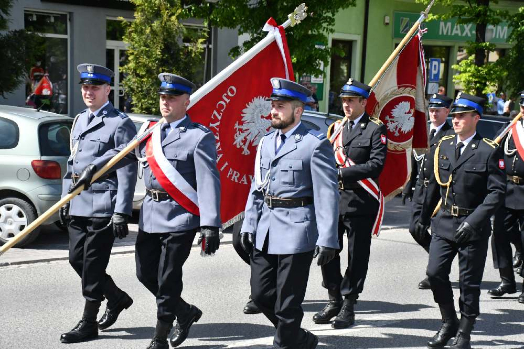 Miechowskie Święto Uchwalenia Konstytucji 3 Maja - poczty sztandarowe powiatowej policji i straży pożarnej