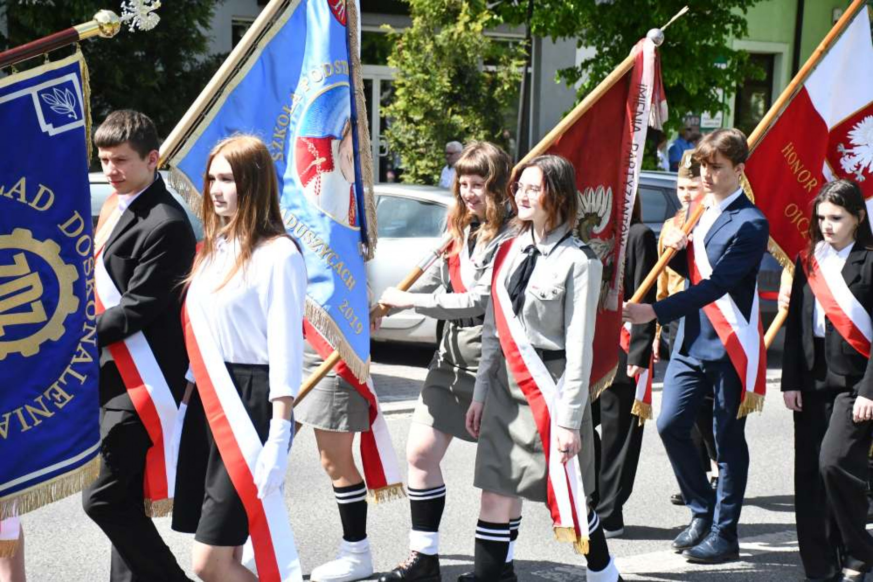 Miechowskie Święto Uchwalenia Konstytucji 3 Maja - młodzież ZS Nr 2 z klasy mundurowej i w strojach