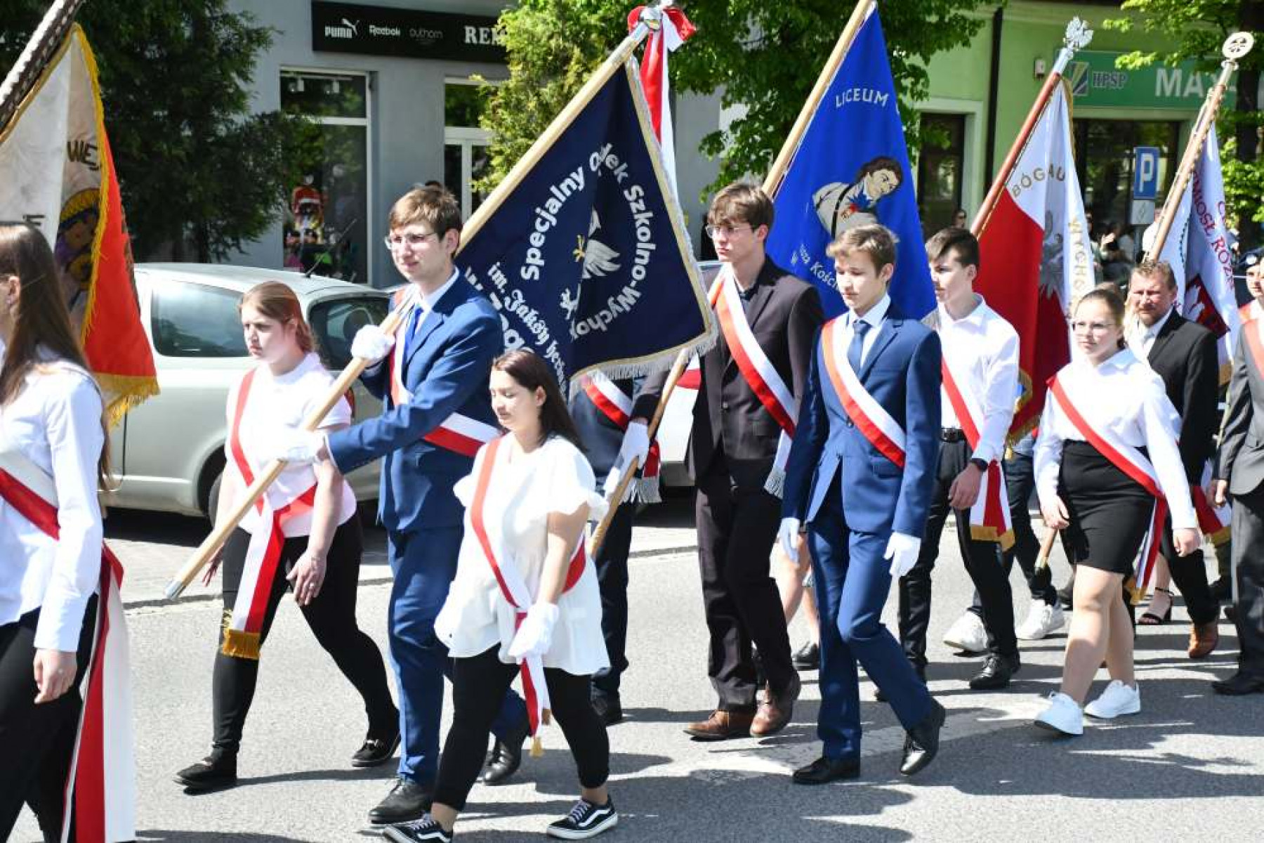 Miechowskie Święto Uchwalenia Konstytucji 3 Maja - poczty sztandarowe różnych szkół i placówek oświatowych