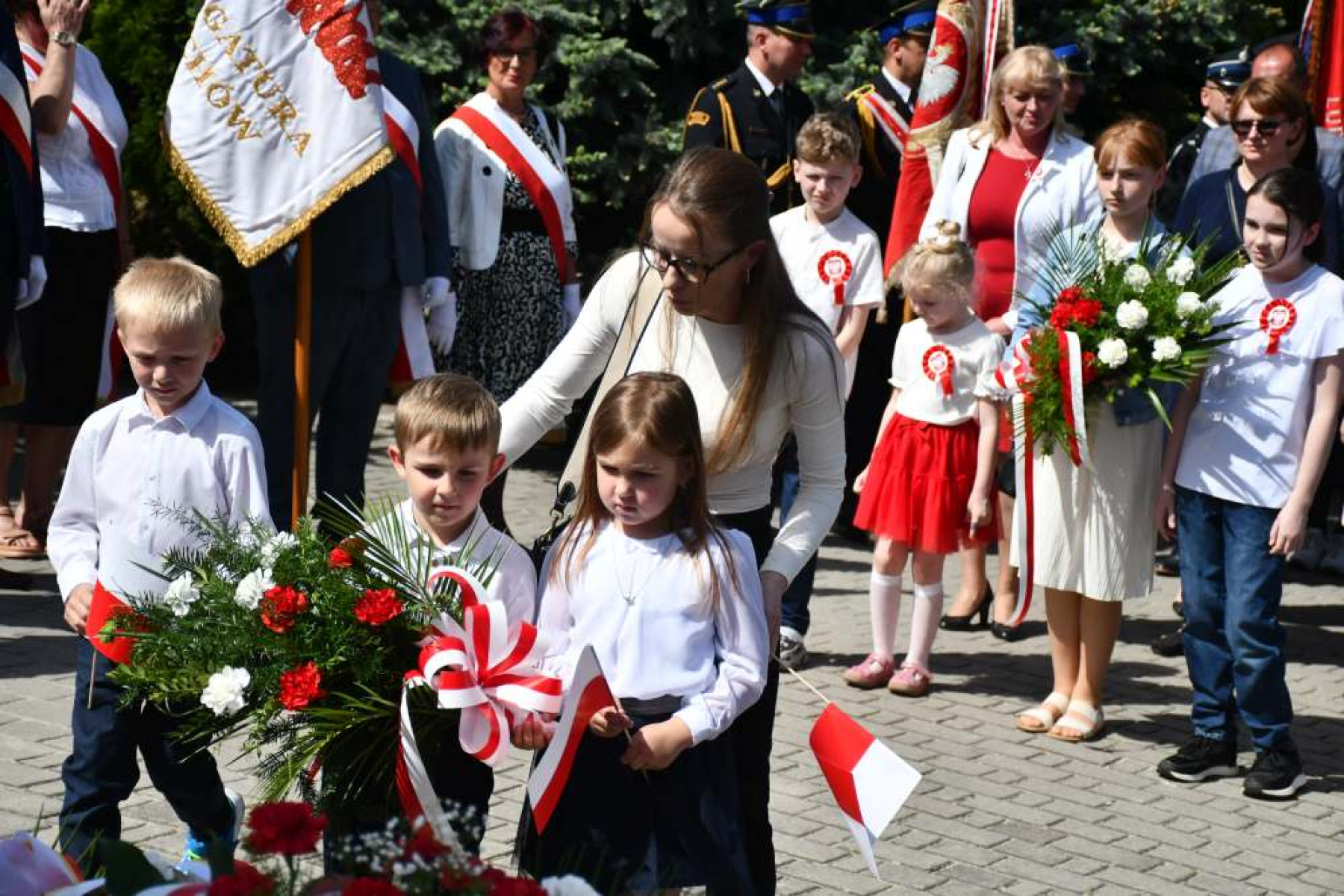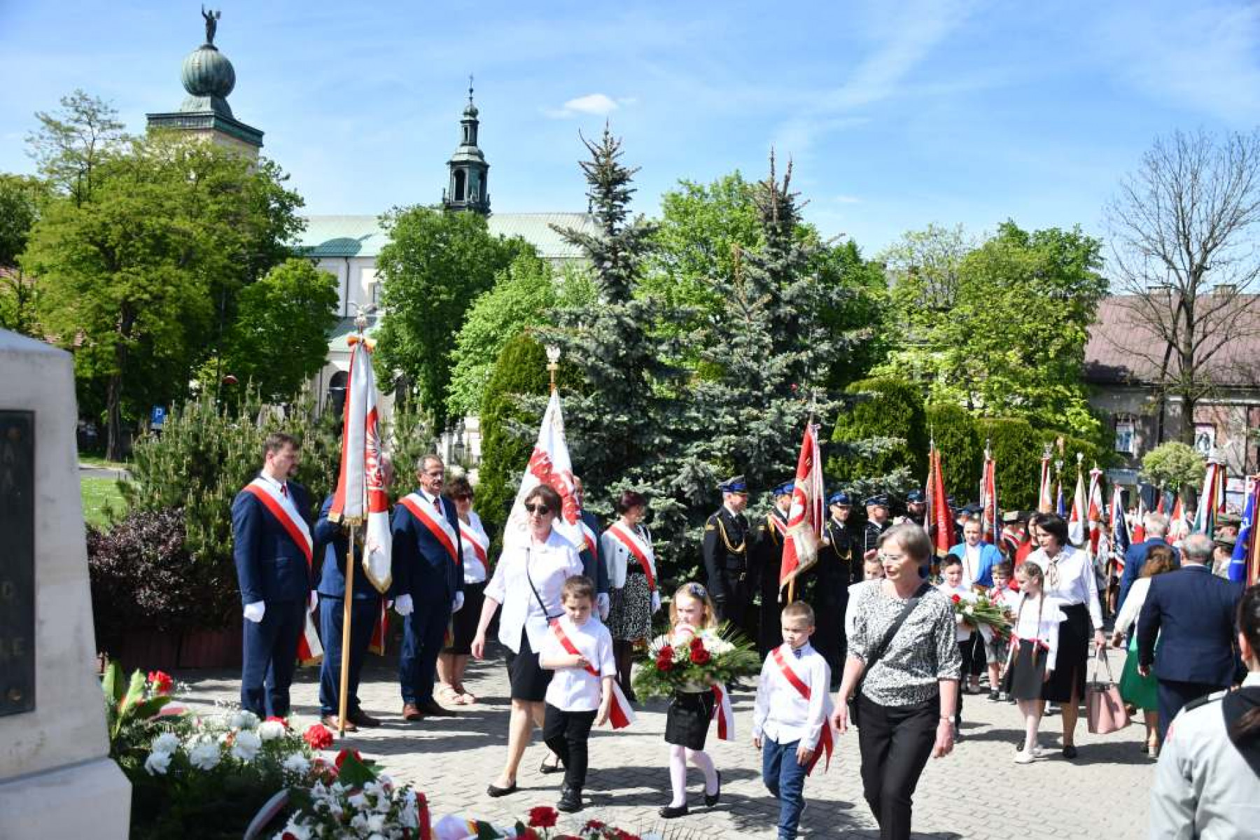 Miechowskie Święto Uchwalenia Konstytucji 3 Maja - dzieci pod Pomnikiem z Orłem