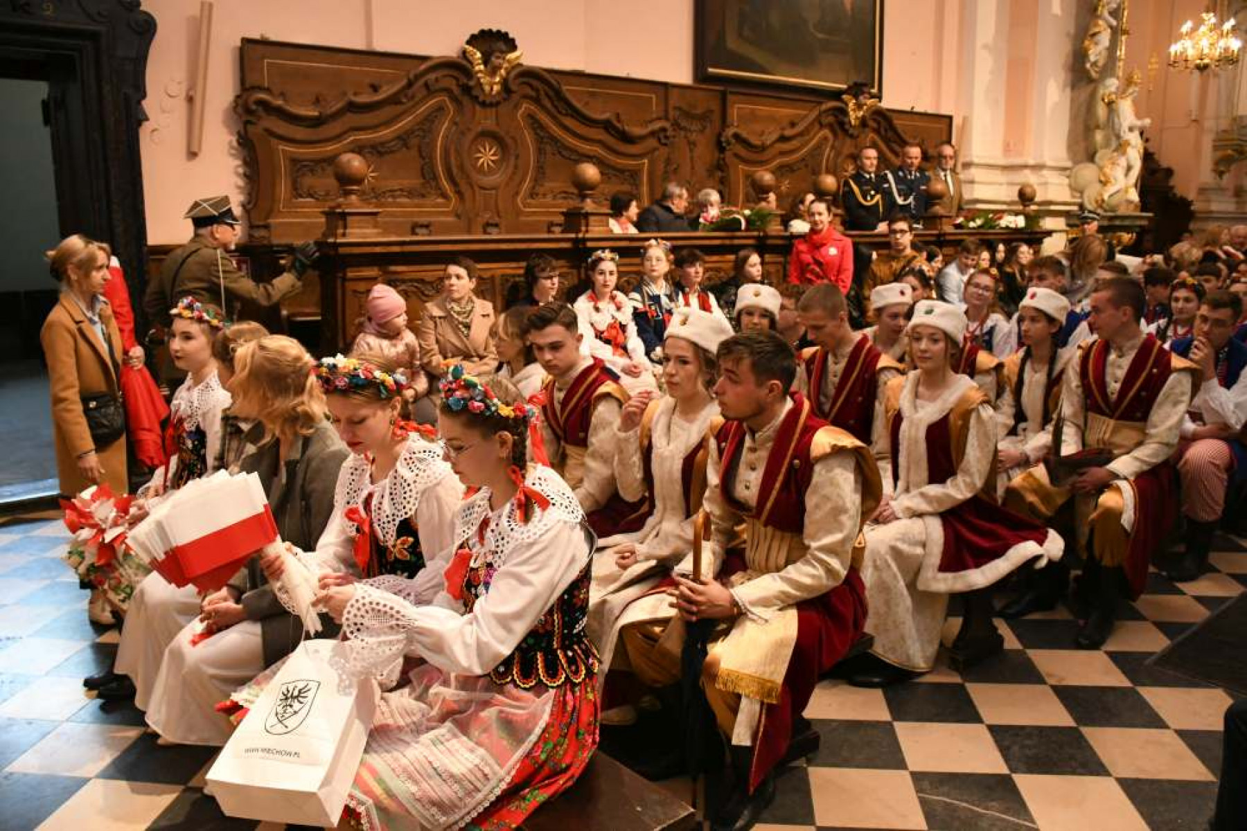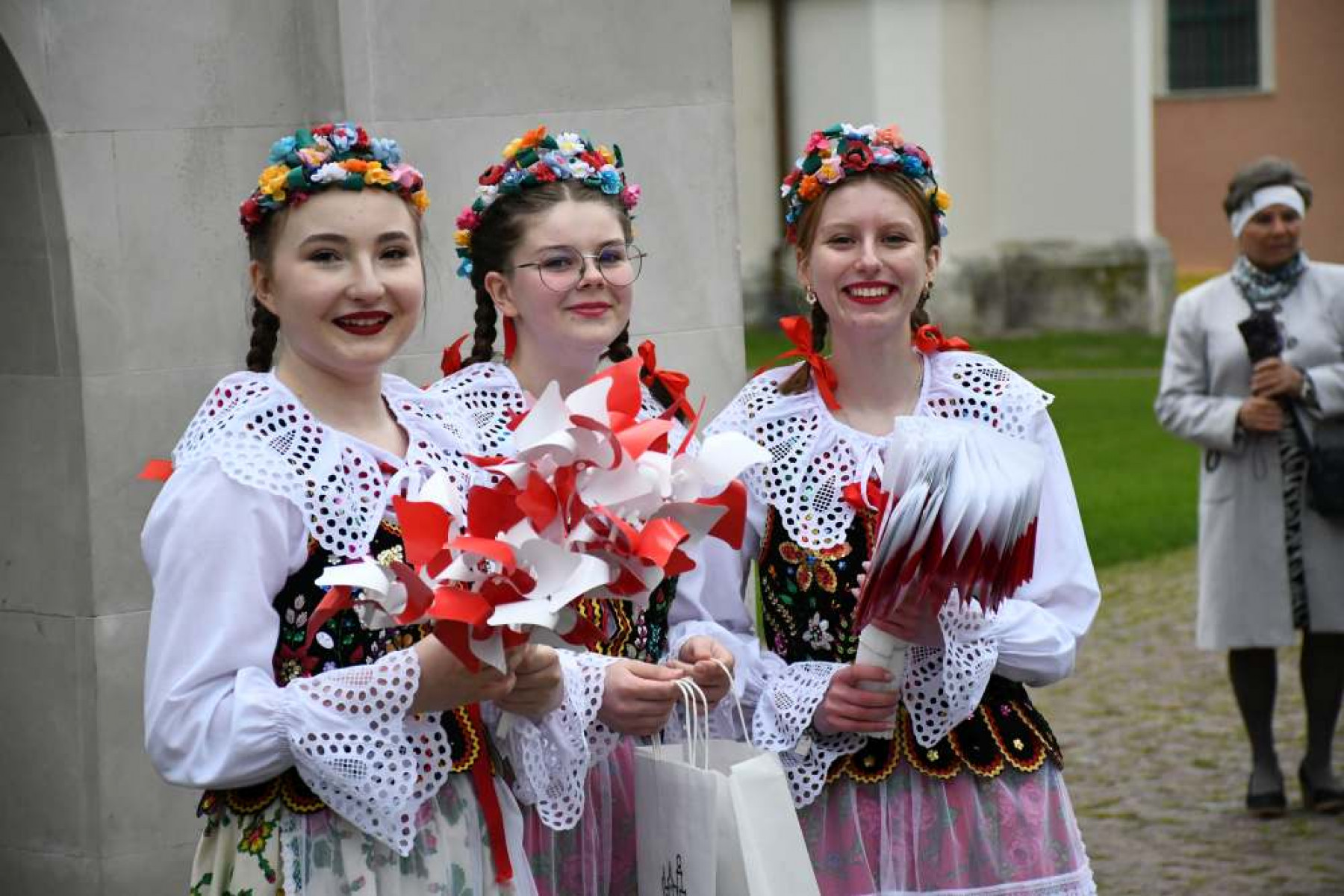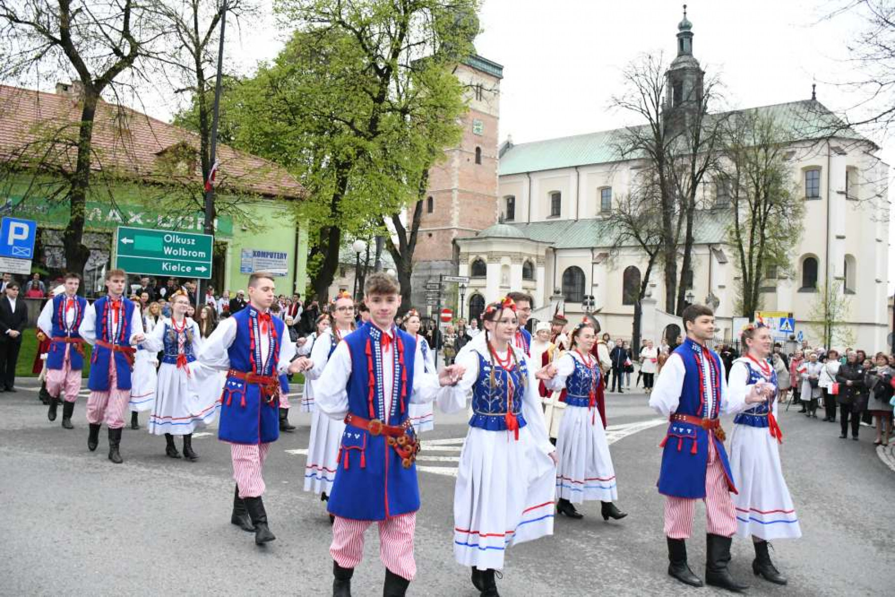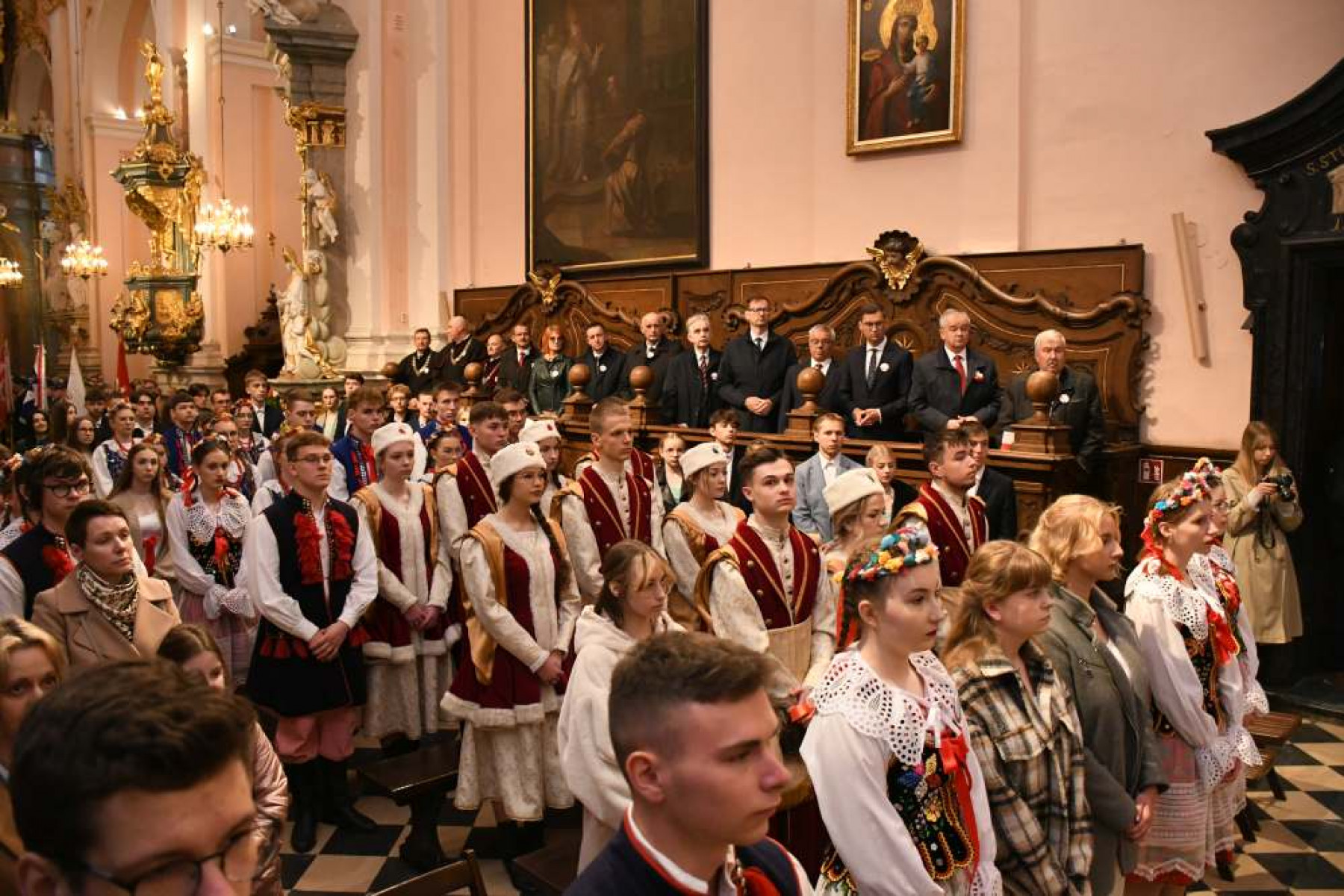 3 Maja 2023 w Miechowie - młodzież w strojach regionalnych w Bazylice Grobu Bożego