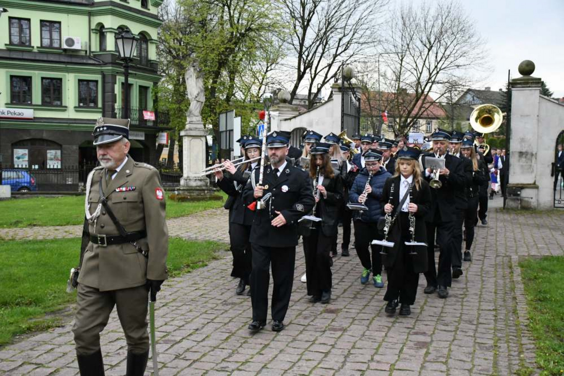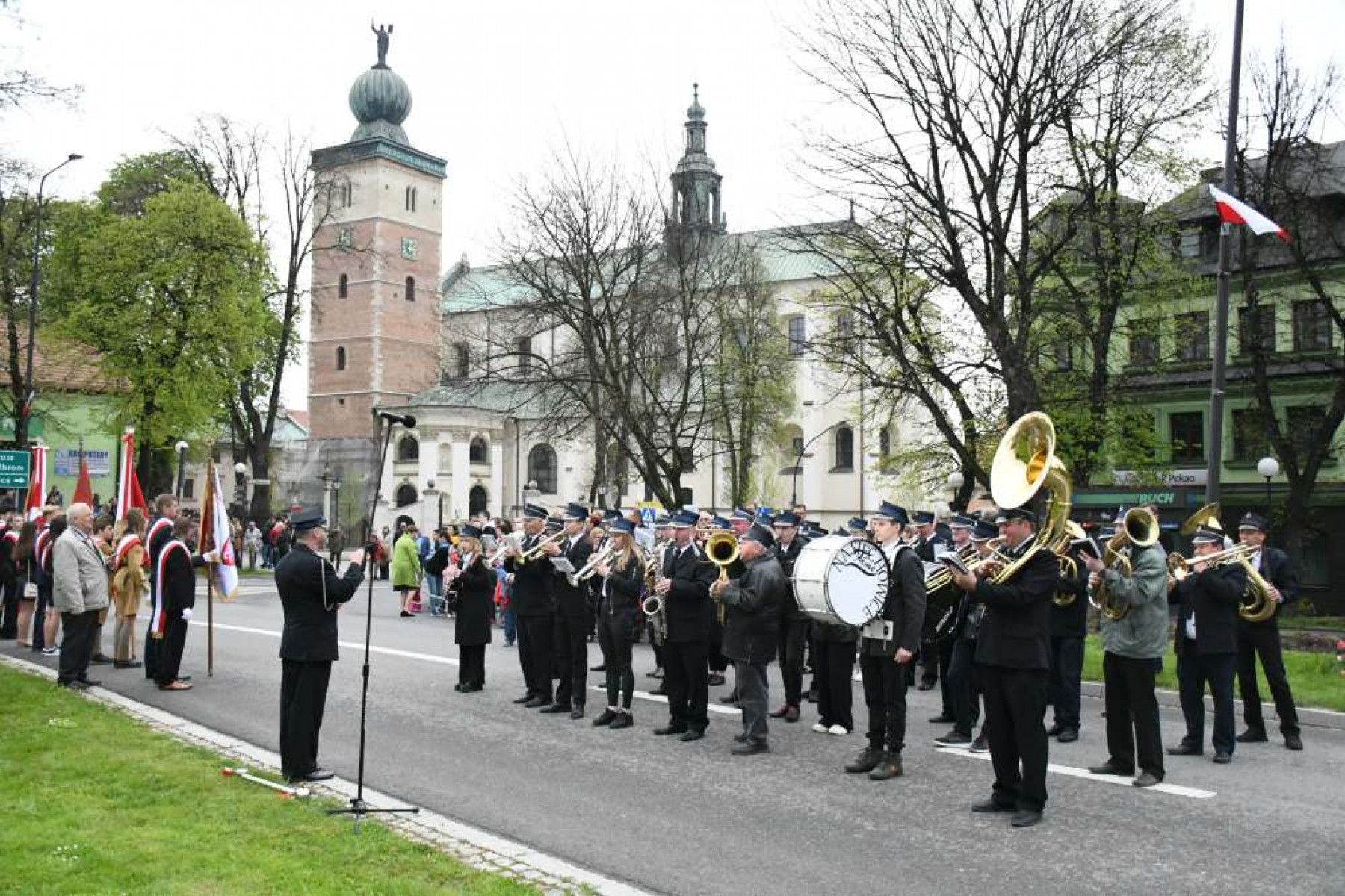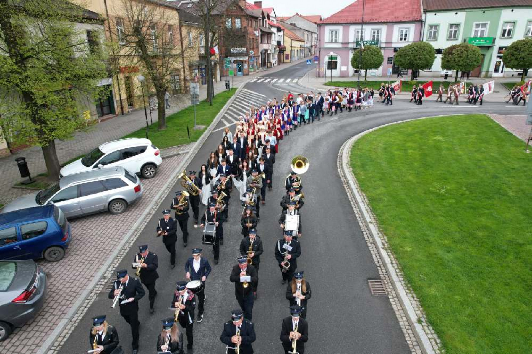 3 Maja 2023 w Miechowie - orkiestry dęte prowadzą do Bazyliki Grobu Bożego