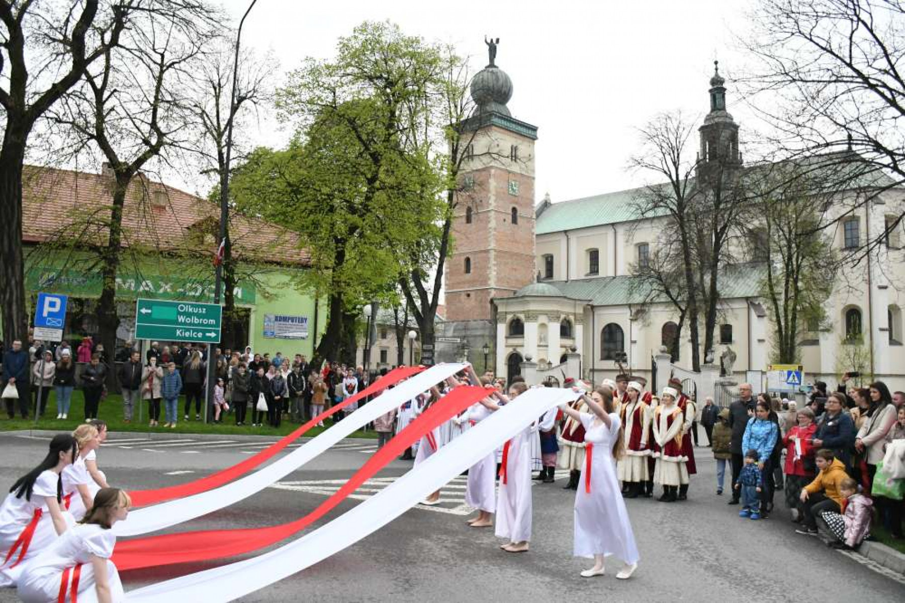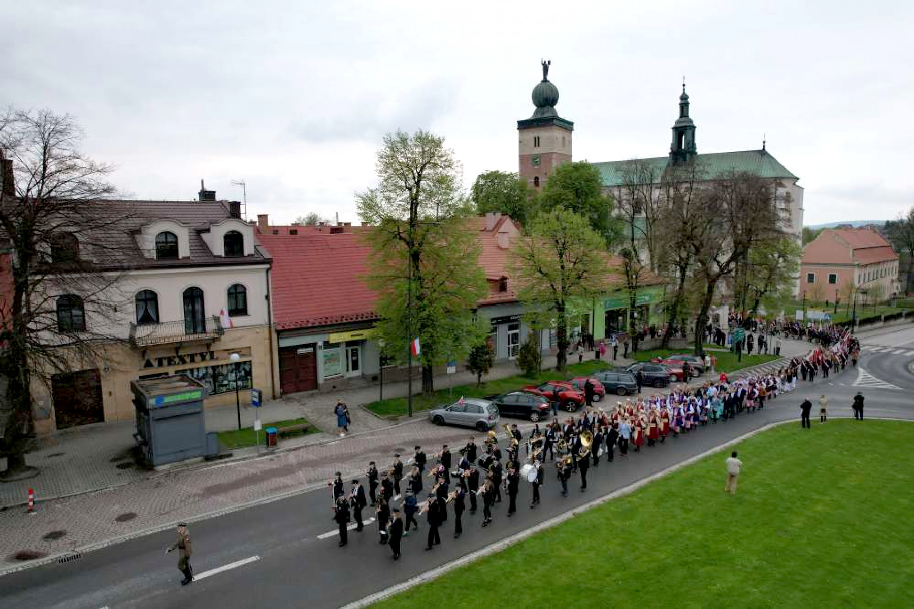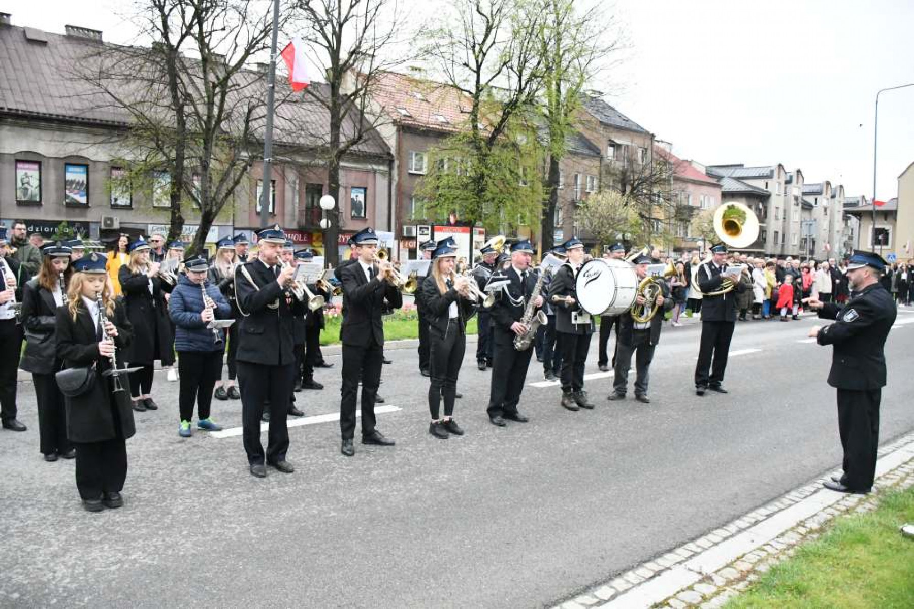 3 Maja 2023 w Miechowie - orkiestry dęte prowadzą do Bazyliki Grobu Bożego
