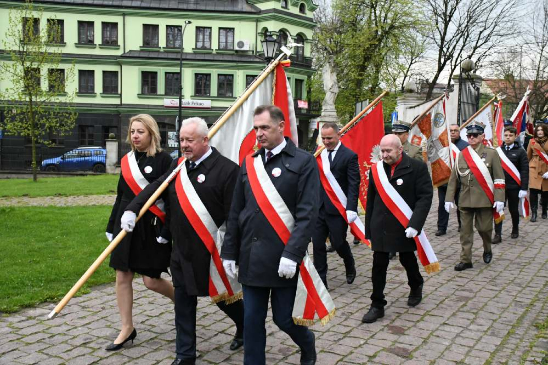 3 Maja 2023 w Miechowie - poczty sztandarowe samorządów, służb, szkół i różnych organizacji
