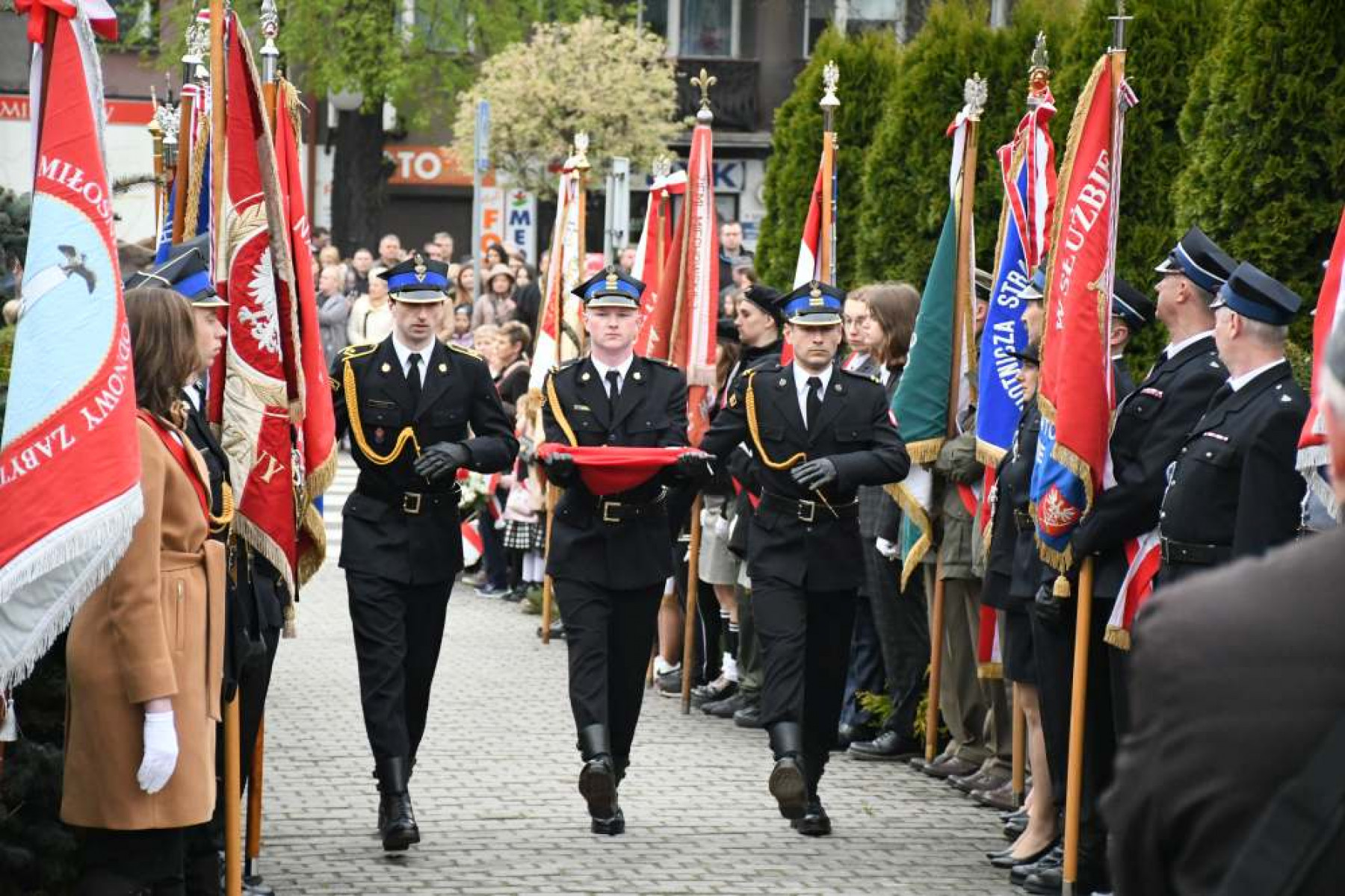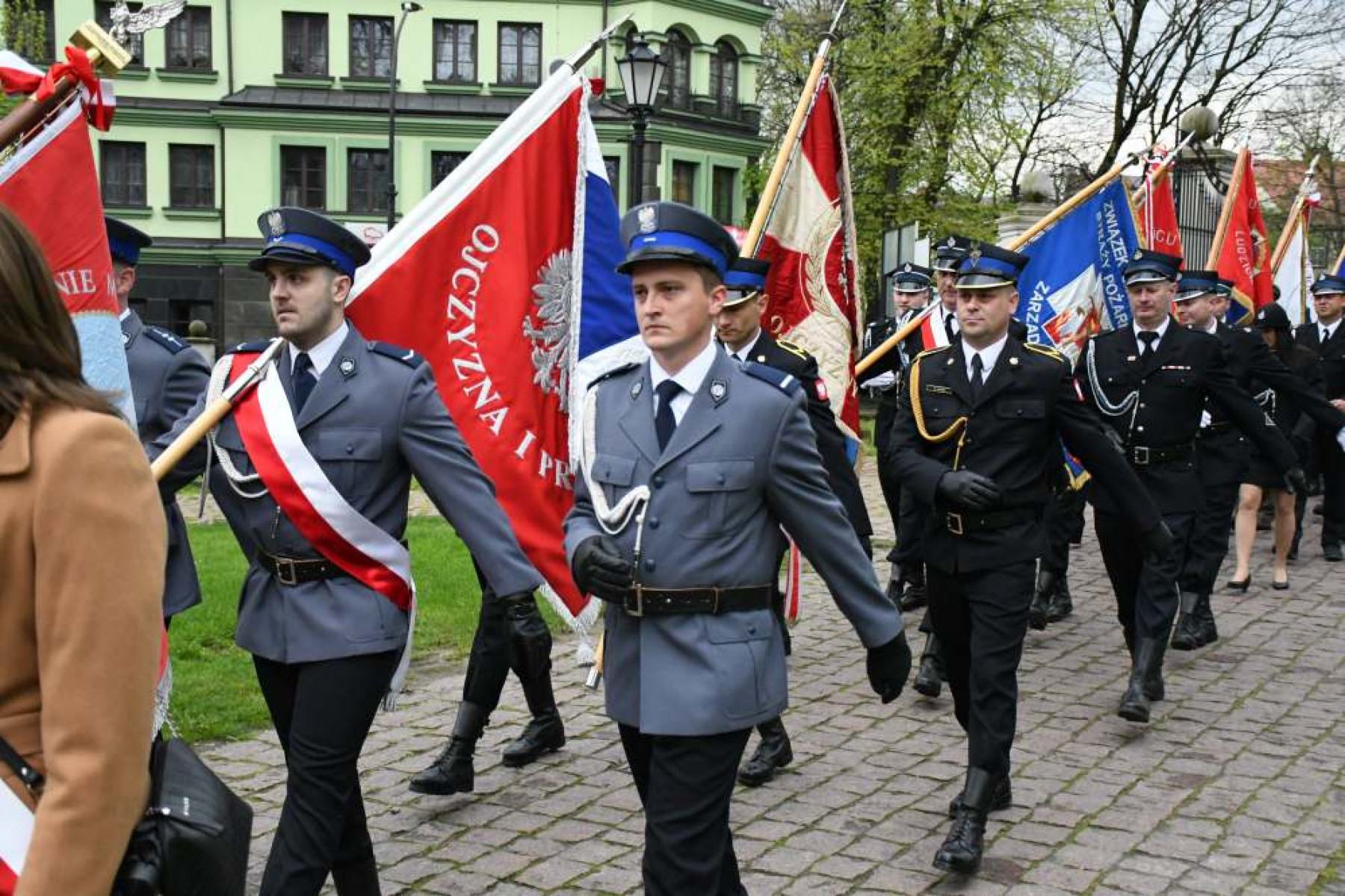 3 Maja 2023 w Miechowie - poczty sztandarowe służb mundurowych