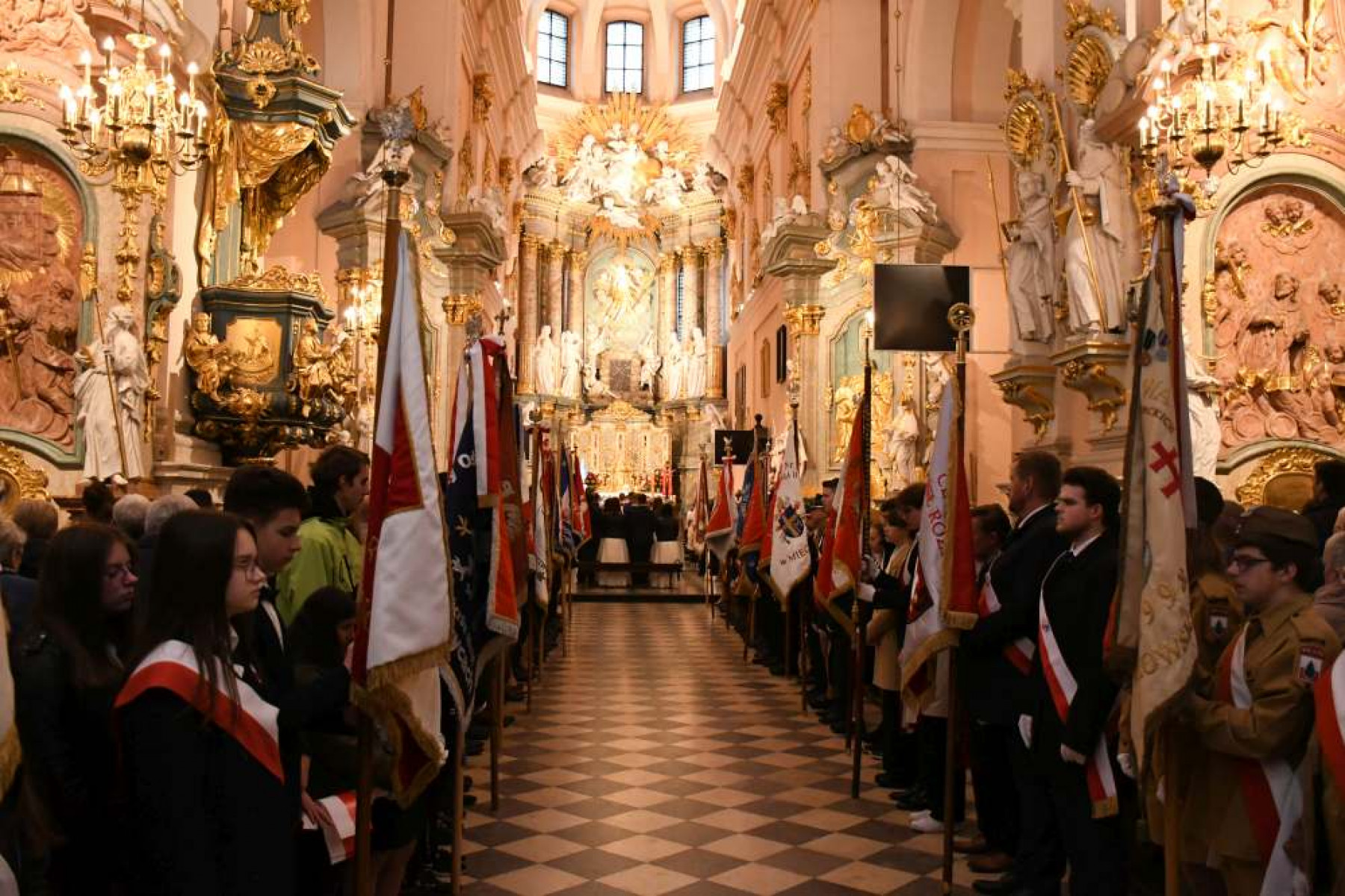3 Maja 2023 w Miechowie - liczne poczty sztandarowe zgromadzone na Mszy św.