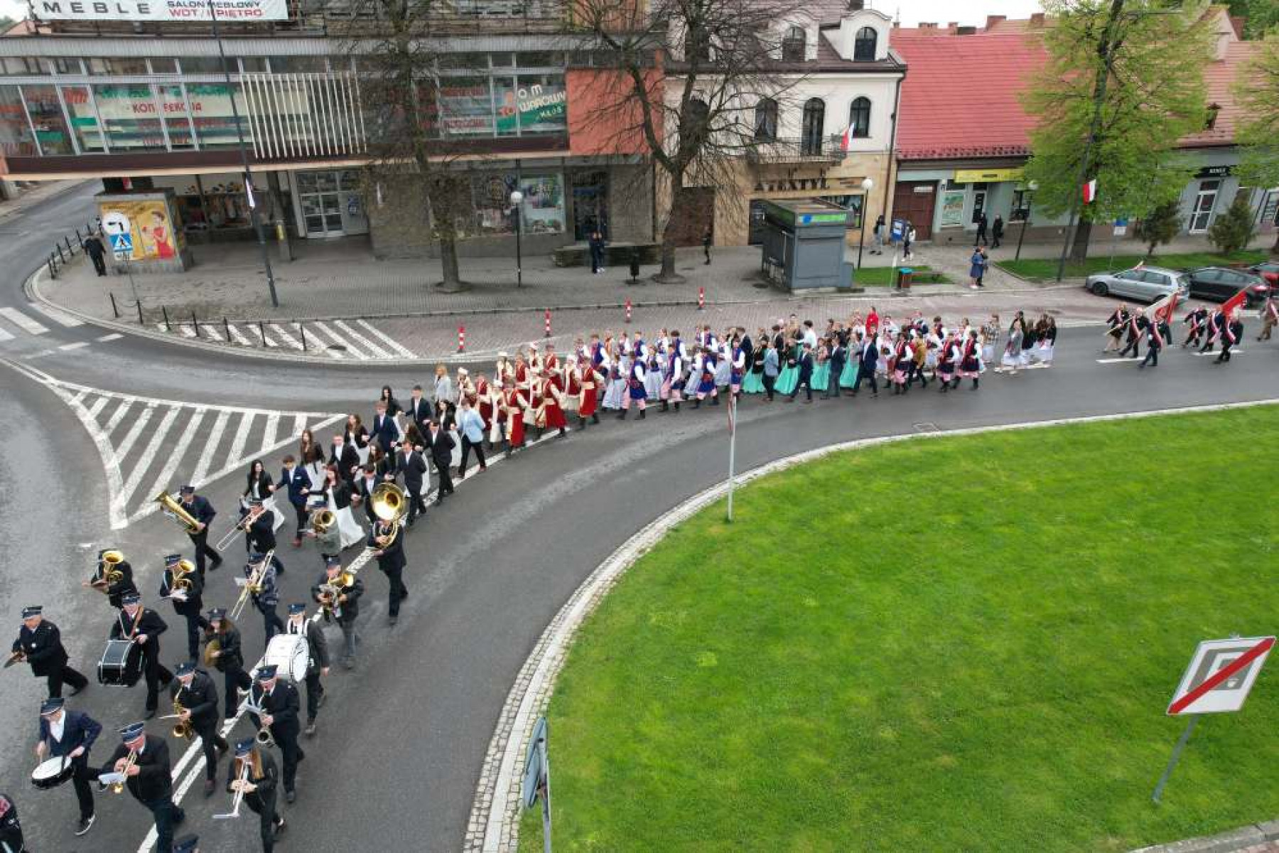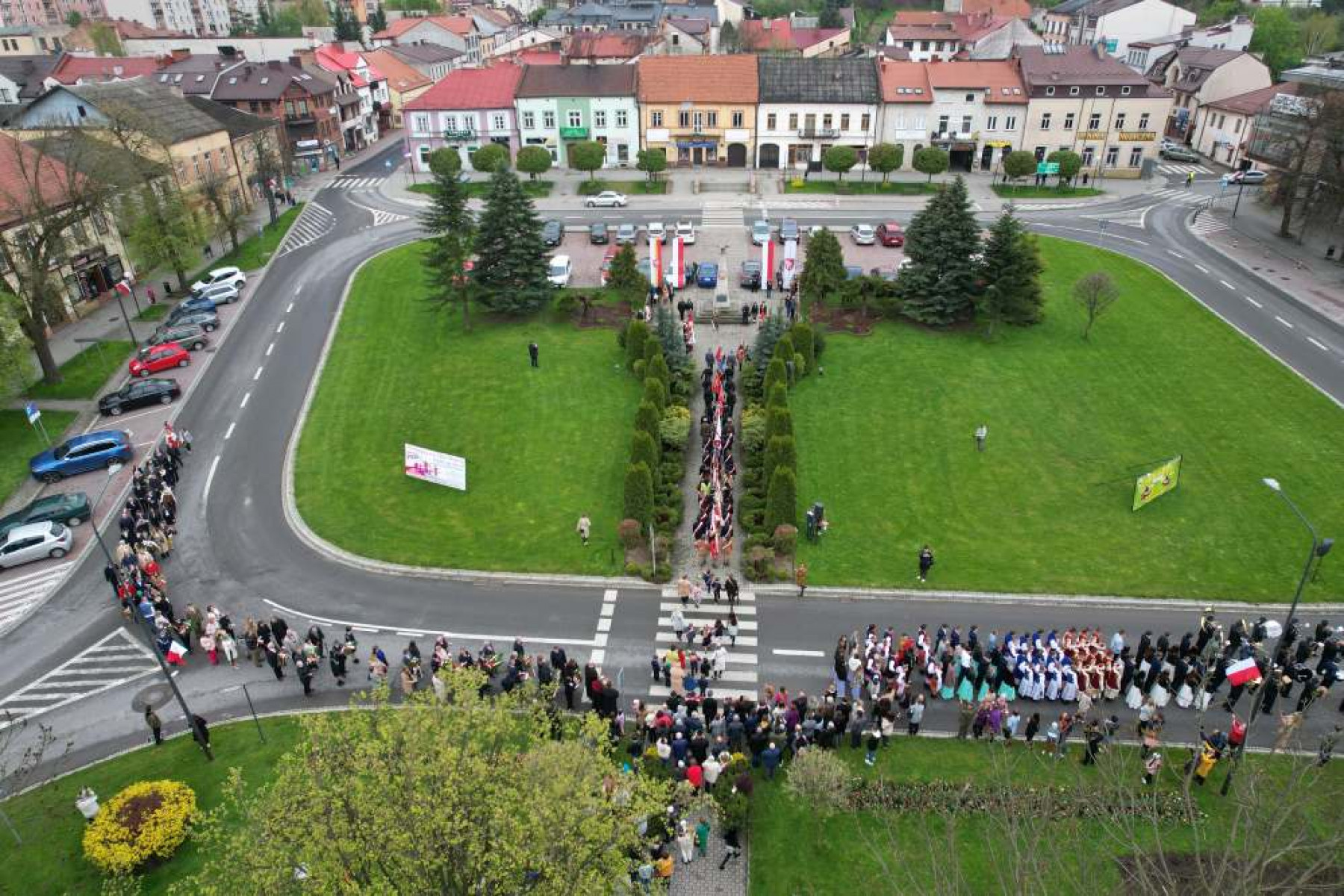 3 Maja 2023 w Miechowie - długi korowód na miechowskim Rynku