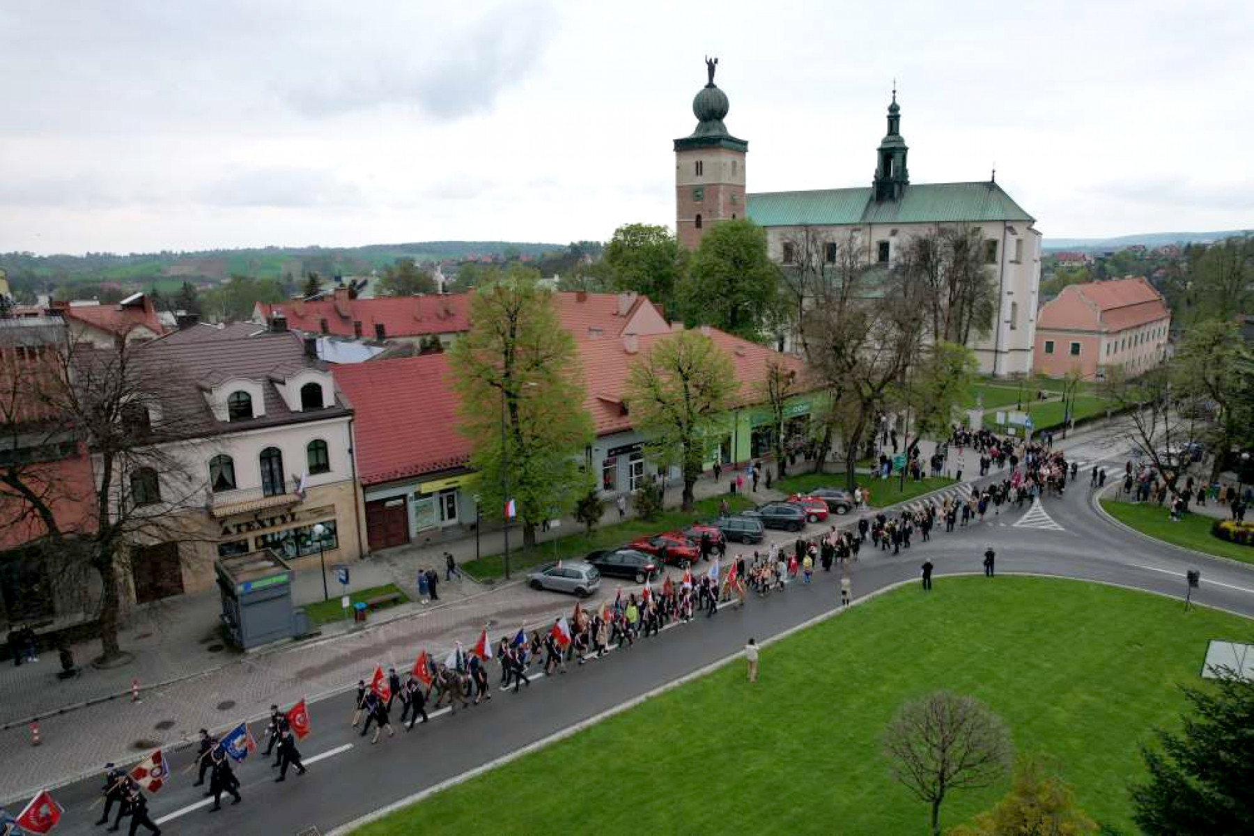 3 Maja 2023 w Miechowie - przemarsz wokół Rynku