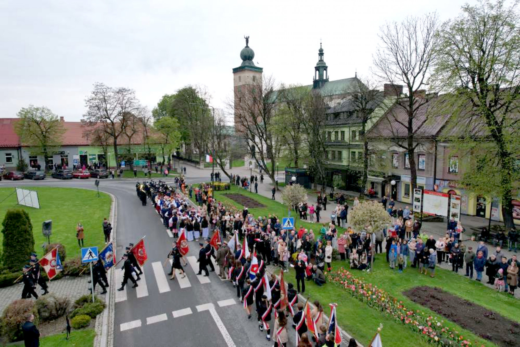 3 Maja 2023 w Miechowie - uroczysty przemarsz na Rynku