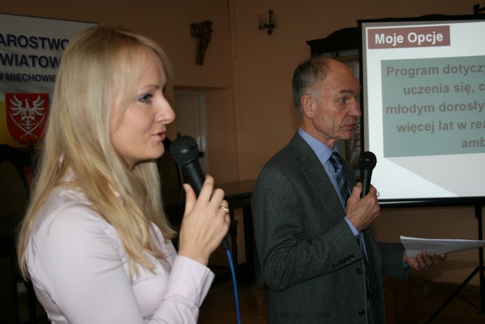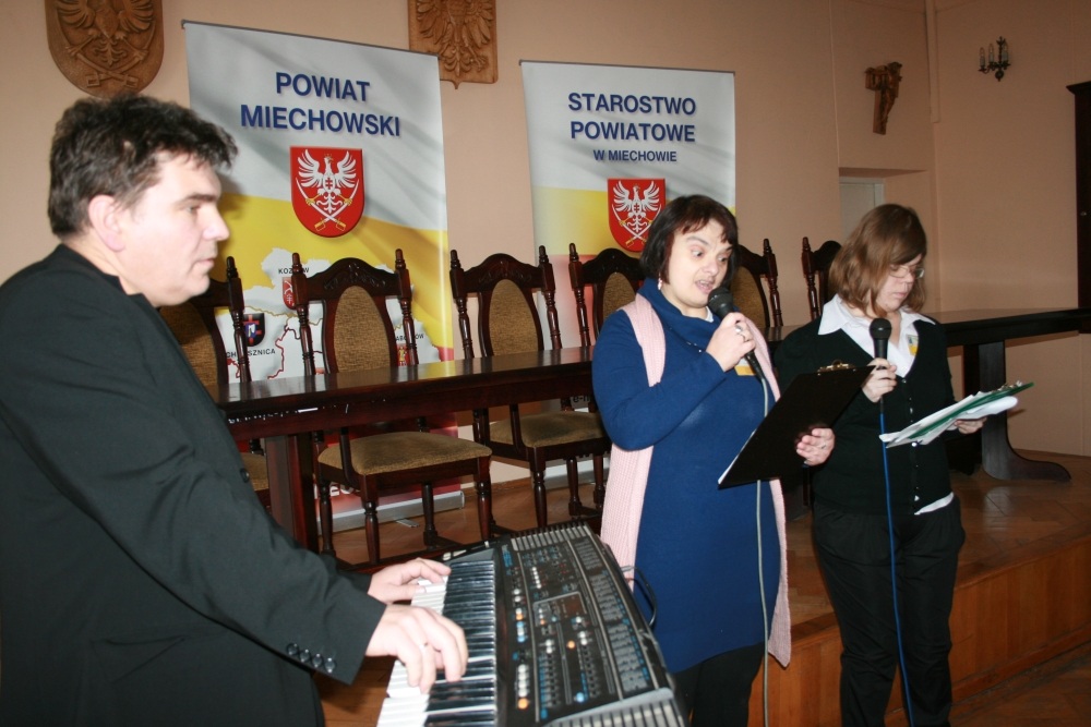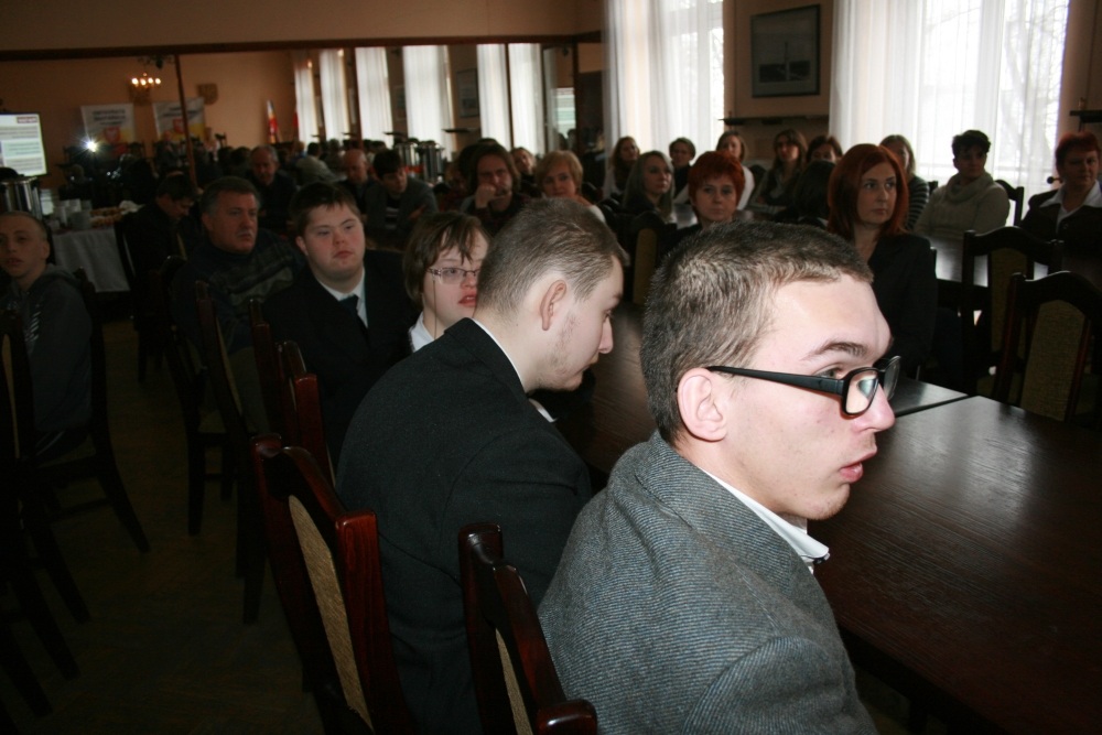 10 Grudnia 2012(...) Znaczną grupę słuchaczy stanowili wychowankowie i pensjonariusze ww. jednostek. Małgorzata Wachacka, dyrektor DPS w Miechowie, jako organizator spotkania, w imieniu mieszkańców i pracowników placówki witała liczne audytorium. Rekomendując konferencję przypomniała, że jej celem jest integracja niepełnosprawnych intelektualnie ze społeczeństwem i upowszechnienie angielskiego programu The Gateway Award, który jest jedną z metod aktywizacji i społecznego rozwoju ww. osób. Ideą pomysłodawców programu jest, by niepełnosprawni byli jak najmniej zależni od otoczenia, a jednocześnie mieli na nie twórczy wpływ. Gośćmi konferencji byli Anglicy z miasta Deal k/Londynu zajmujący się od lat propagowaniem GA - Robert Nixon i Dooy Gray. Mr Robert mówił o "My option” – programie rozwijającym dla dorosłych niepełnosprawnych intelektualnie. Niezależność i umiejętność podejmowania samodzielnych decyzji, to w ocenie referującego, istota programu, który w Wielkiej Brytanii i Północnej Irlandii łączy osób niepełnosprawne i ich rodziny, zrzeszając ich w ponad 700 klubach. Przy pomocy prezentacji multimedialnej Brytyjczyk przedstawił zebranym podstawowe założenia programu, po czym prowadził dyskusję nt. Czy w Polsce jest możliwość wprowadzenia angielskiego wzorca? Dyskutanci potwierdzili tę tezę, z zastrzeżeniem, że program wymagałby w naszym kraju modyfikacji do polskich warunków w zakresie pomocy społecznej. Kolejnym referentem była Ewa Nałęcz – Kłos, koordynator Programu GA w Polsce, na co dzień pracująca w Ośrodku Szkolno – Wychowawczym w Krakowie, która podzieliła się z zebranymi doświadczeniami z 33 – letniej pracy z niepełnosprawnymi intelektualnie. Mówiła również o efektach i sposobach pracy w ramach Programu GA, wskazując, że jego atutami są aktywność i kreatywność. W trakcie konferencji wystąpiły wokalistki Władzia i Kasia, uczestniczki WTZ działających przy Polskim Stowarzyszeniu na rzecz Osób z Upośledzeniem Umysłowym – Koło w Miechowie.