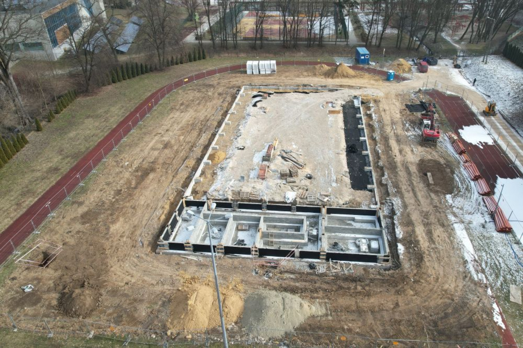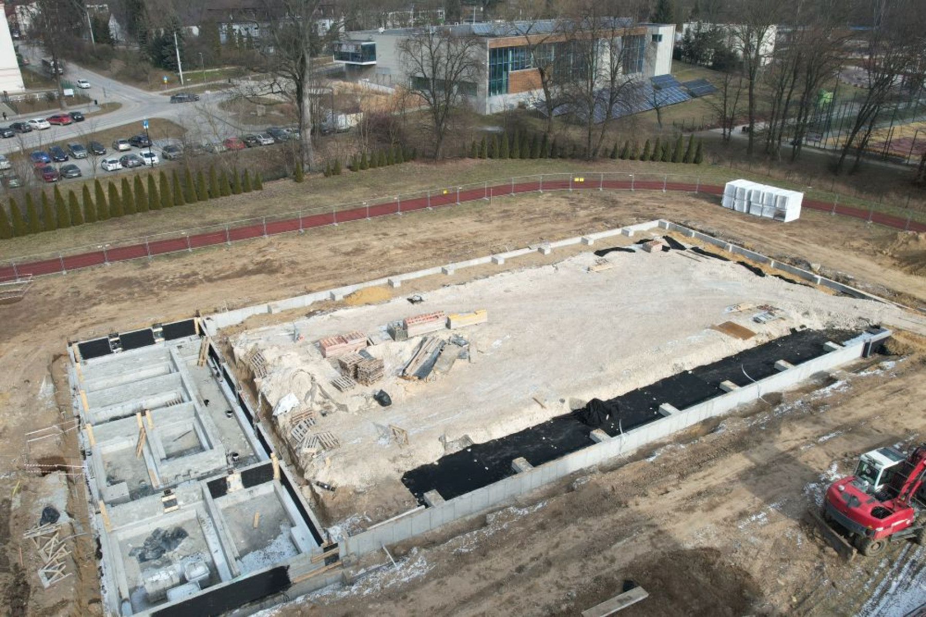 Budowa nowego boiska wielofunkcyjnego - widok z drona