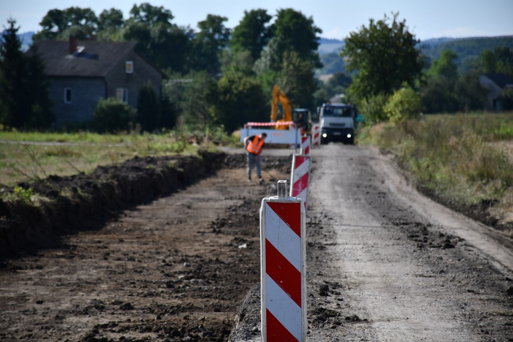 - wykonanie nowych warstw konstrukcyjnych wraz z poszerzeniem nawierzchni jezdni do szerokości 5,5 m z obustronnymi poboczami o szerokości 0,75 m,