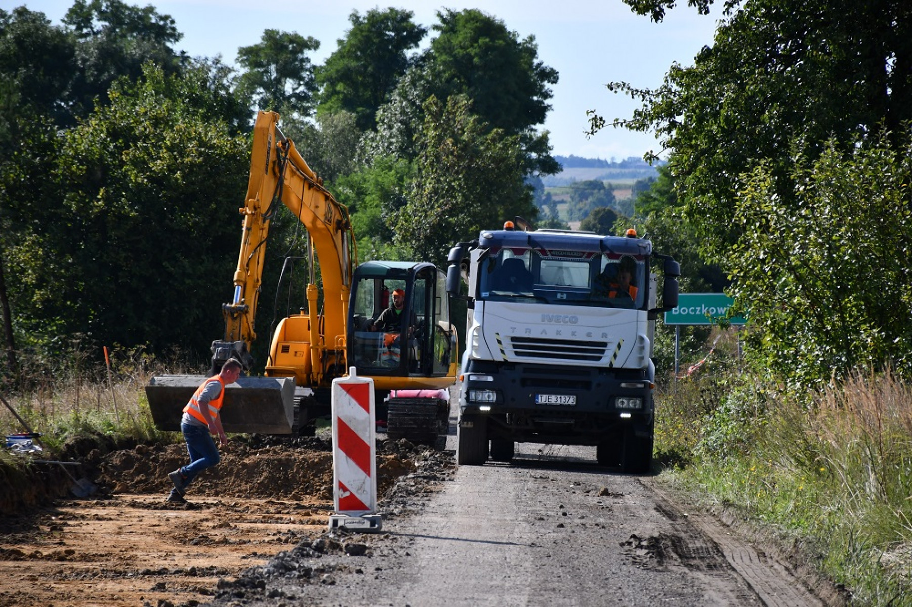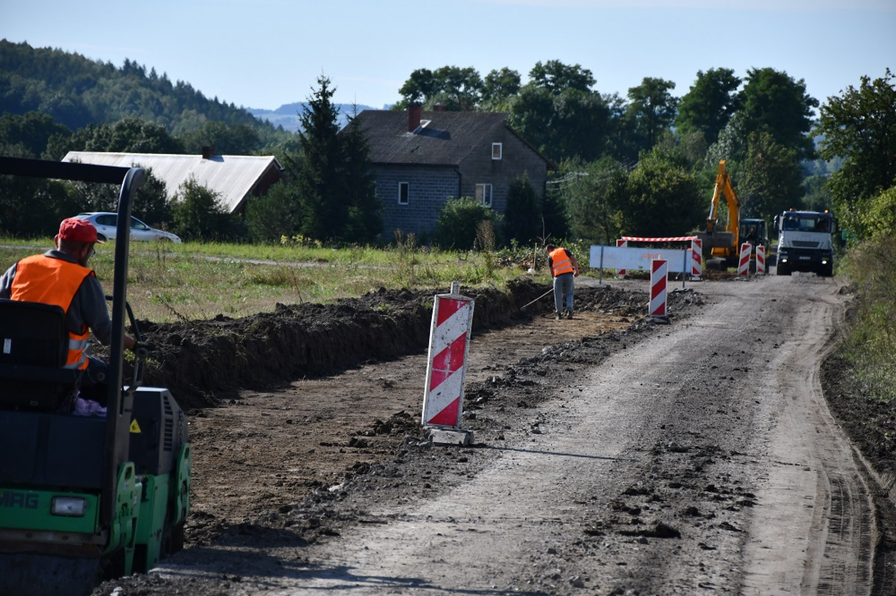 Sprzęt ciężki w trakcie prac przy drodze powiatowej w Boczkowicach