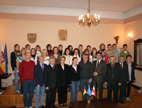 (...) wicestarosta Stanisław Pietrzyk, członek Zarządu Dariusz Marczewski i naczelnik Wydziału Oświaty, Kultury i Sportu Leonard Mazur. Uczniom towarzyszyli pedagodzy liceum - dyrektor Zygmunt Dróżdż, germanistka Urszula Curyło i Andrzej Śliwiński. To cykliczne spotkanie jest kontynuacją współpracy, jaką młodzież i pedagodzy Liceum Ogólnokształcącego w Miechowie utrzymują z niemiecką stroną od 1995r. Jej efektem są coroczne wymiany grup uczniowskich, dzięki którym poznawane są historie partnerskich szkół, miast i krajów. Dla uczniów z miechowskiego LO, którzy goszczą w swych domach niemieckich rówieśników to także okazja do doskonalenia znajomości języka zachodnich sąsiadów. Wicestarosta Stanisław Pietrzyk witając przybyłych scharakteryzował powiat i ego zadania oraz kierunki rozwoju. W rewanżu niemieccy opiekunowie grupy - małżeństwo Christa i Heinz A.Wild - przybliżyli specyfikę przemysłowego miasta i regionu, z którego przybyli. Wyrazili także pogląd, że stały rozwój współpracy niemiecko-polskiej, także poprzez kontakty młodzieży jest koniecznością obecnych czasów. Spotkanie w starostwie zakończyło wspólne zdjęcie i przekazanie Niemcom materiałów promocyjnych powiatu miechowskiego.