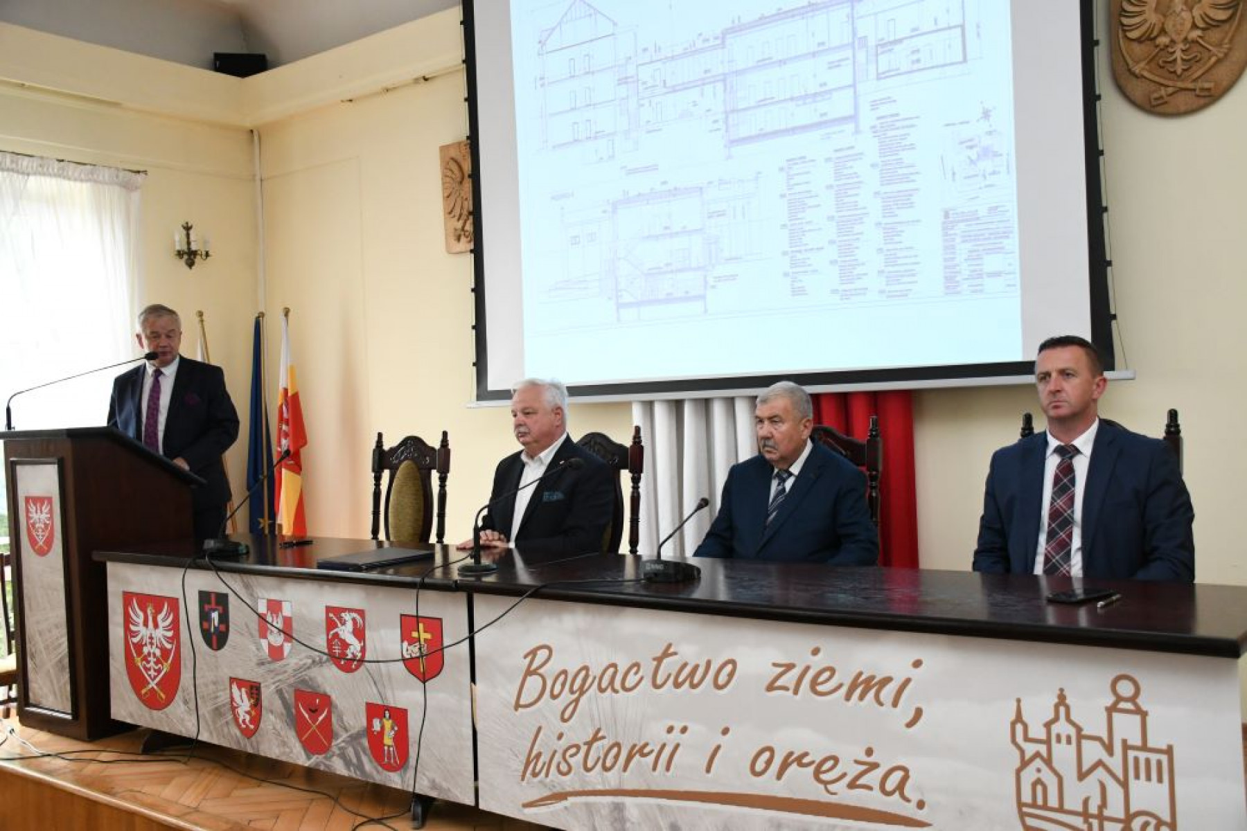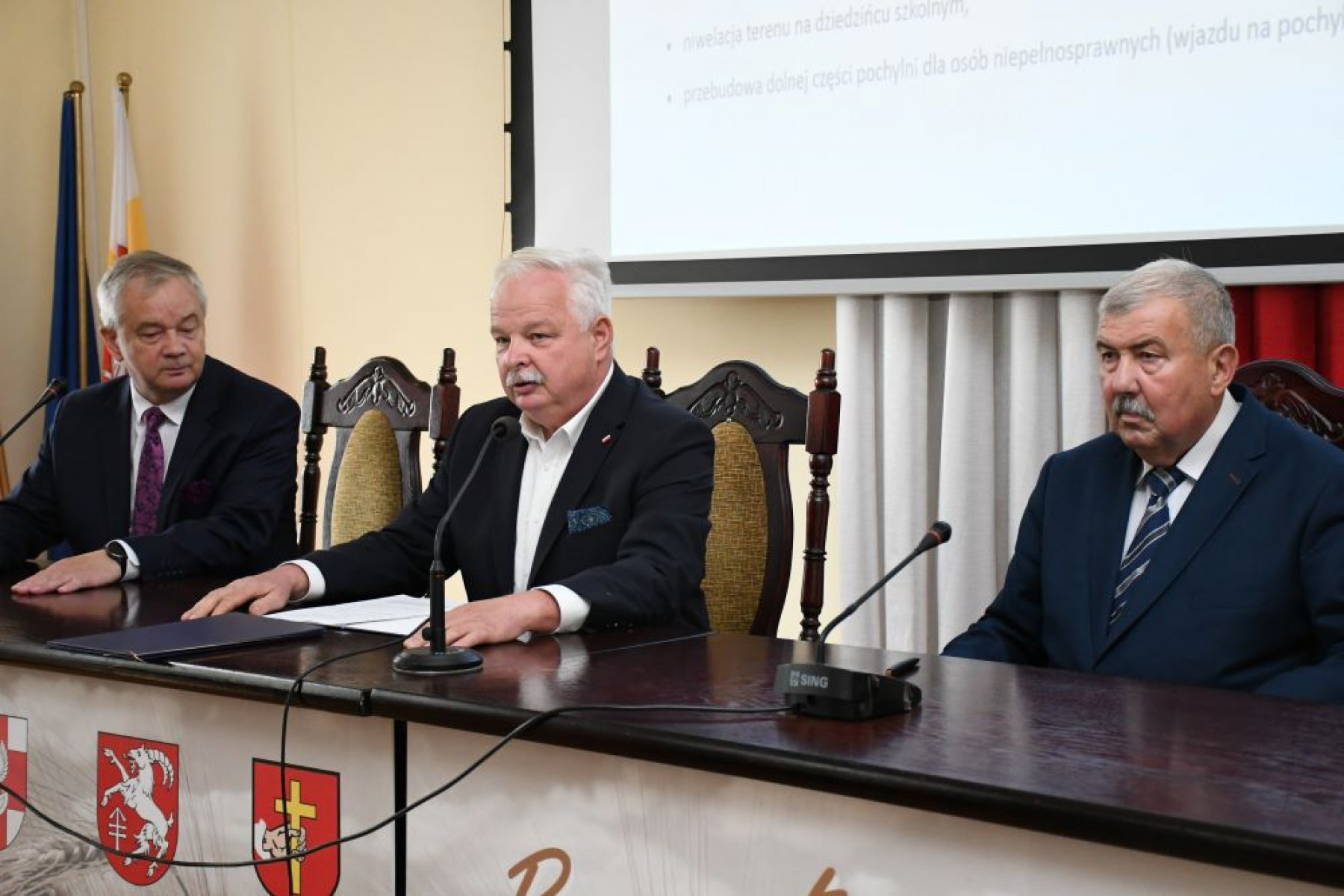 Sygnatariusze umowy na dofinansowanie budowy łącznika ZS Nr 1 w Miechowie