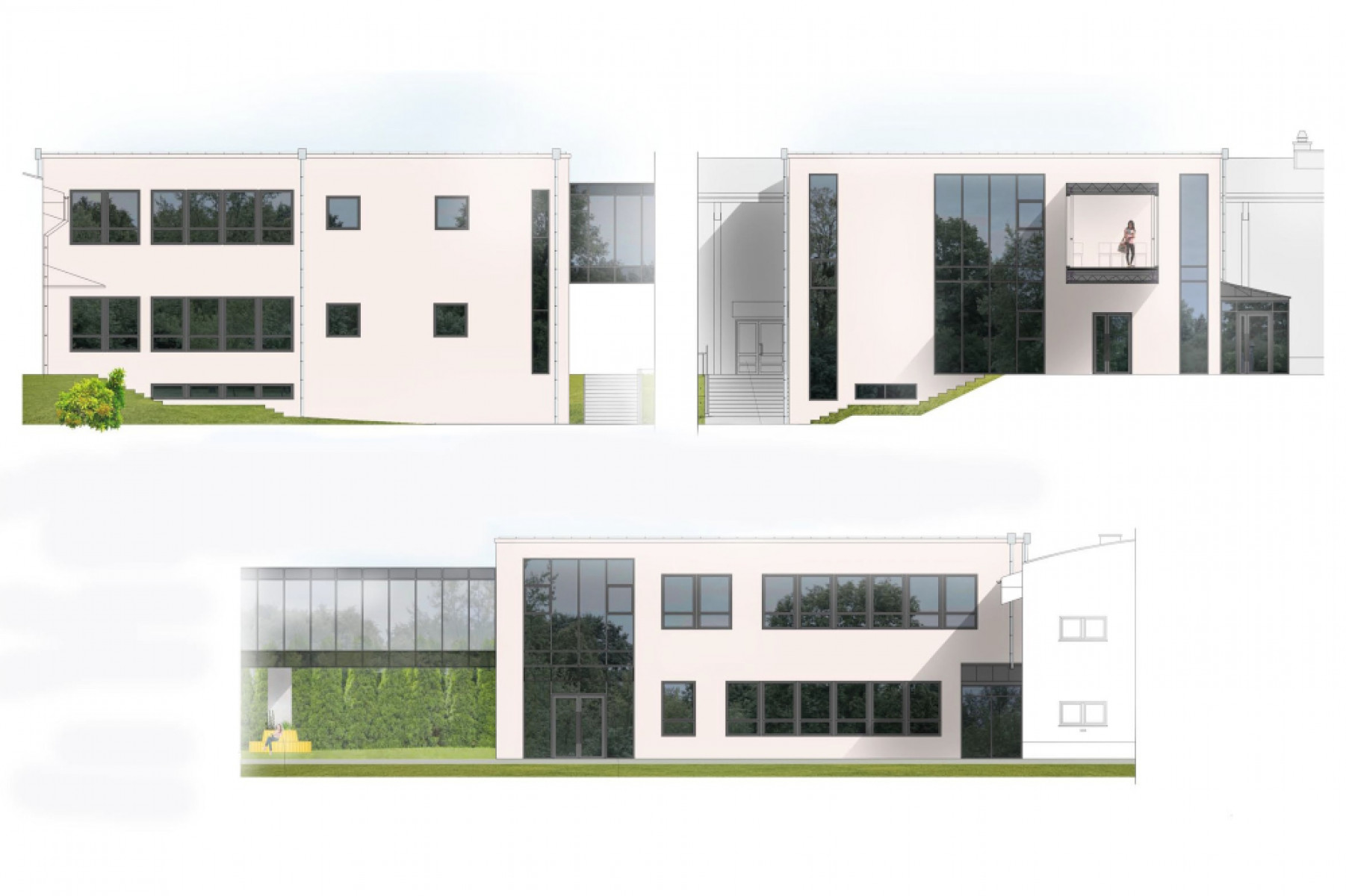 - rozbudowa budynku sali gimnastycznej poprzez budowę budynku (wraz z łącznikiem w formie korytarza na wysokości I piętra i słupem nośnym), który połączy wszystkie trzy budynki (w tym: budynek sali gimnastycznej, budynek starej szkoły, oraz budynek projektowany) w jeden budynek wewnętrznie ze sobą skomunikowany,