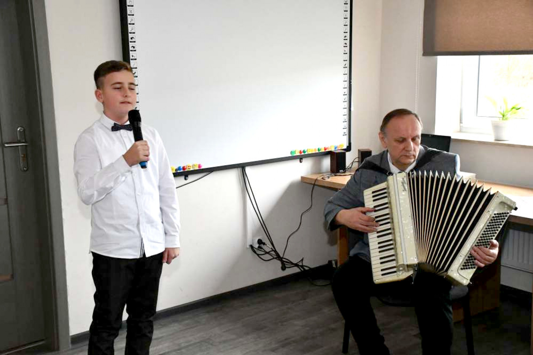 Kamil Wolski i Adam Kocerba artystycznie na otwarciu biblioteki w Dziaduszycach