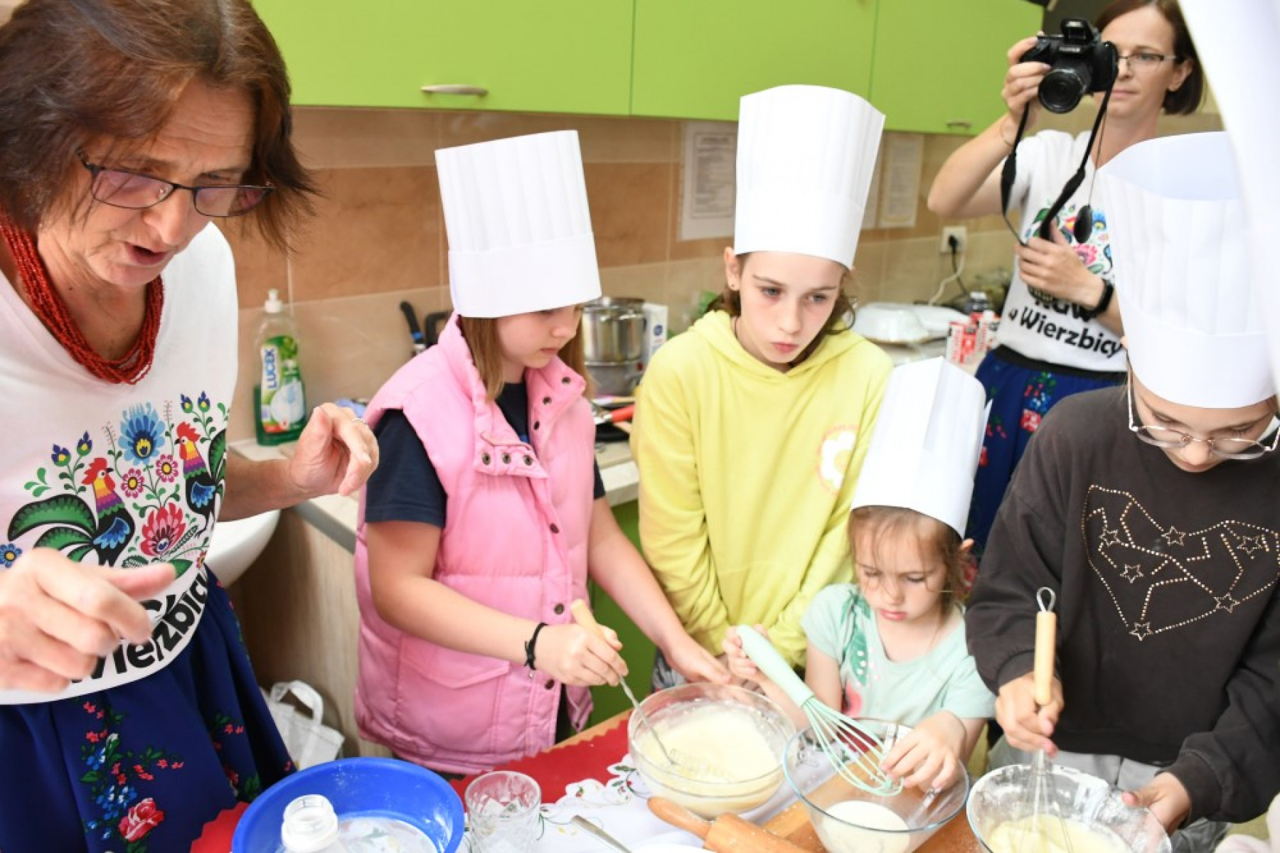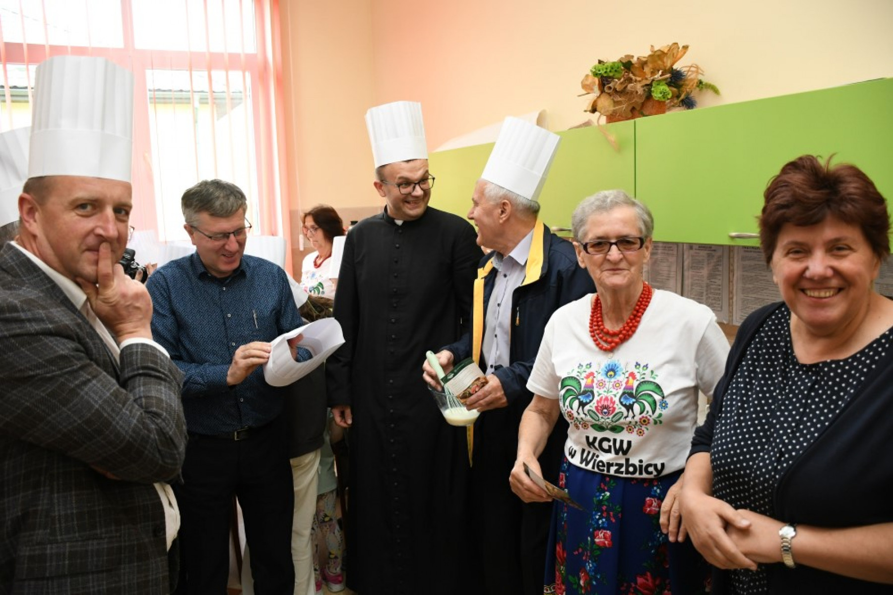 Panie z KGW Wierzbica pod okiem niestrudzonej Stanisławy Myrda wraz z uczniami kozłowskiej szkoły podstawowej, w asyście wicestarosty Pawła Osikowskiego, wójta Jana Zbigniewa Basy, ks. wikariusza Dariusza Nygi, kierownik biblioteki Bożeny Tabor i dyr. szkoły Leszka Misiaka szykowali ciasto pod gofry i naleśniki.
