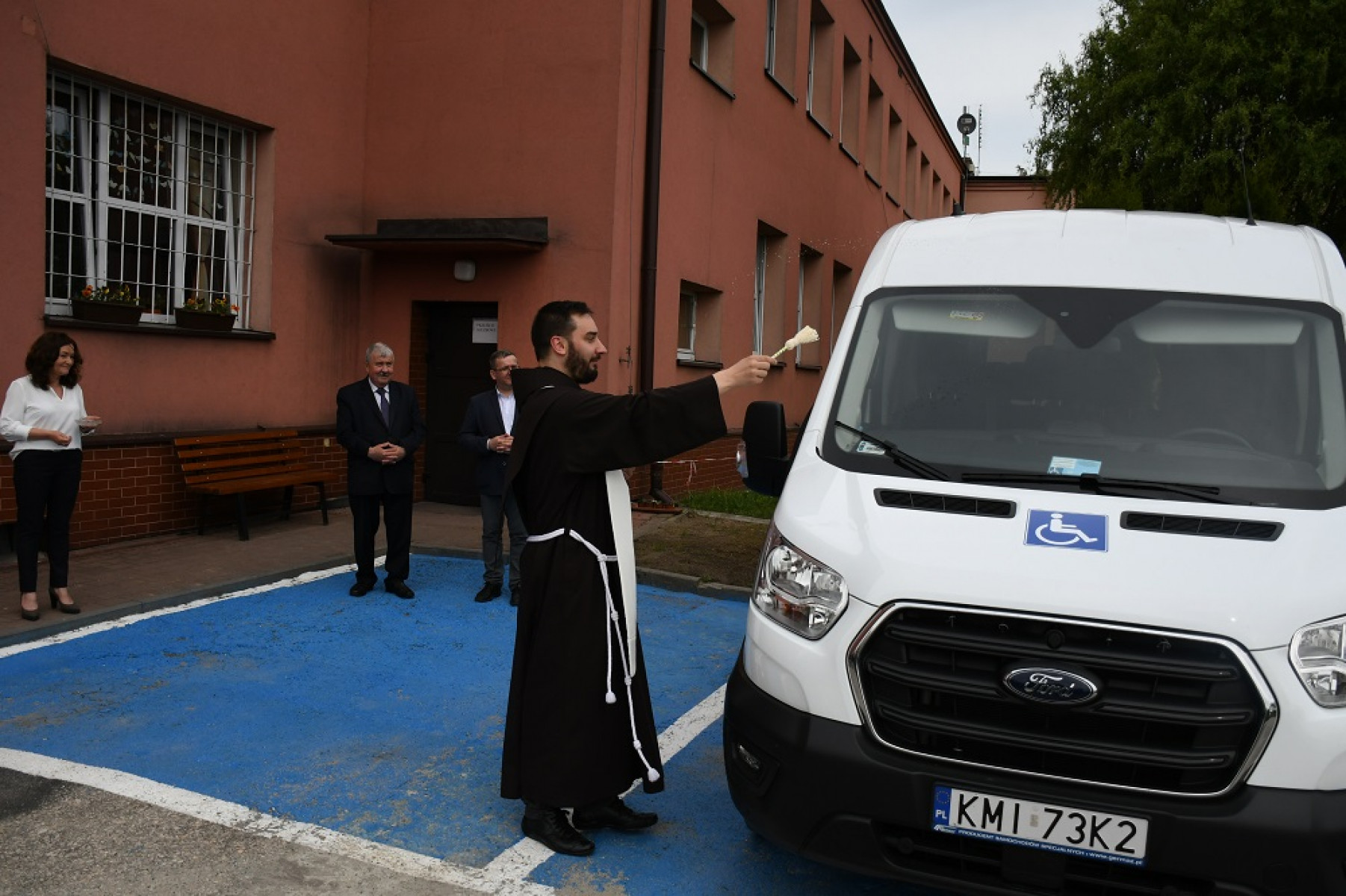 Po pół roku użytkowania, przejechaniu prawie 15 tys. km, po rozluźnieniu obostrzeń związanych z pandemią, 24 maja w Specjalnym Ośrodku Szkolno-Wychowawczym w Zagorzycach uroczyście poświęcono pojazd zakupiony ze środków Państwowego Funduszu Rehabilitacji Osób Niepełnosprawnych oraz Powiatu Miechowskiego.