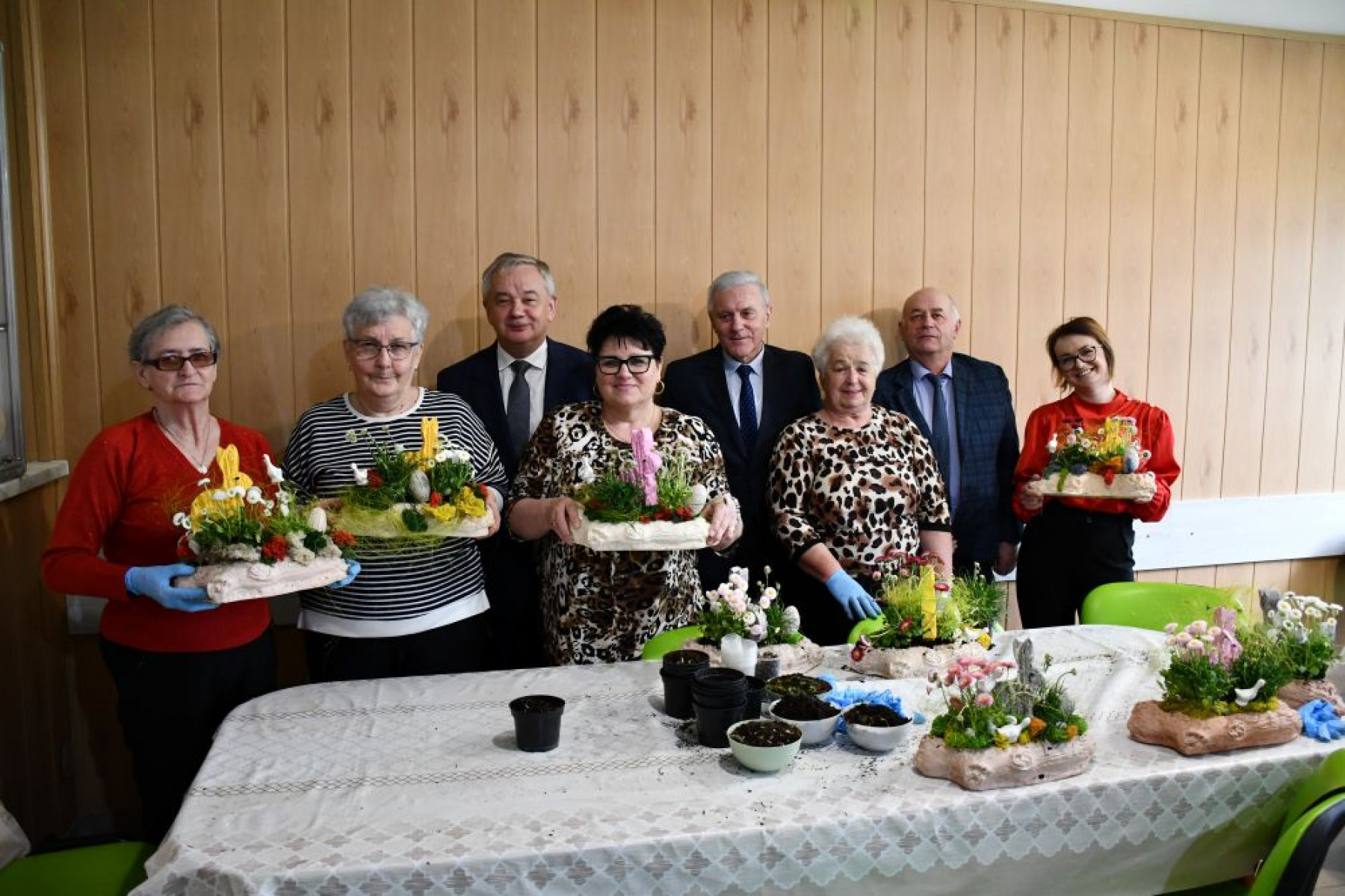 Przybyłe panie serdecznie przywitali Starosta Miechowski Krzysztof Świerczek oraz Wiceprezes Małopolskiej Izby Rolniczej Marek Boligłowa, którzy korzystając z okazji złożyli wszystkim życzenia w związku ze zbliżającymi się Świętami Wielkanocnymi. W przedświątecznej atmosferze panie z lokalnych Kół Gospodyń Wiejskich rozpoczęły pracę na warsztatach rękodzielniczych. Wspólnie tworzyły wielkanocne stroiki z żywych kwiatów i świątecznych dekoracji.
