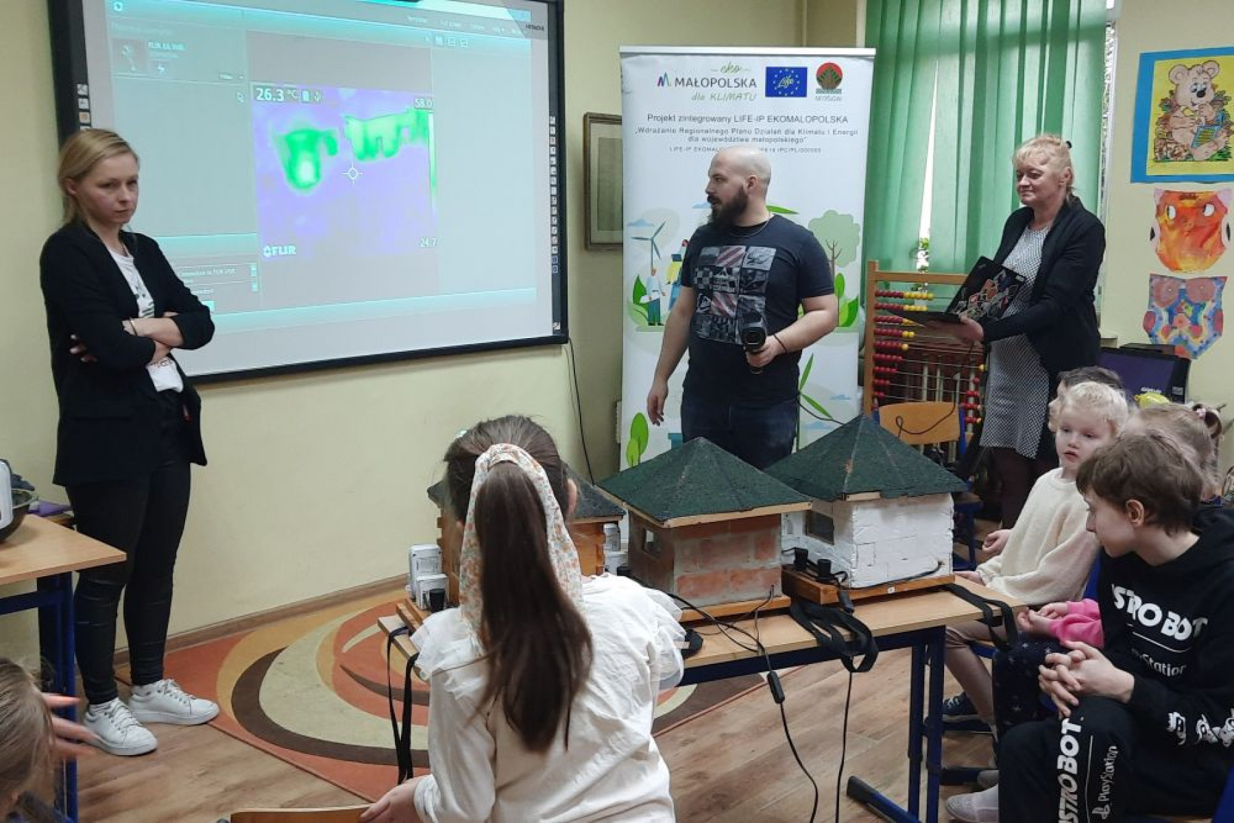 W ramach realizacji projektu LIFE EKOMAŁOPOLSKA dla Klimatu w dniach 11 - 12 marca 2025 r. w Szkołach Podstawowych w Pstroszycach i Jaksicach oraz w Starostwie Powiatowym w Miechowie odbyły się warsztaty edukacyjne dla młodzieży dotyczące zmian klimatu oraz odnawialnych źródeł energii. Łącznie w zajęciach wzięło udział ok. 150 uczniów.