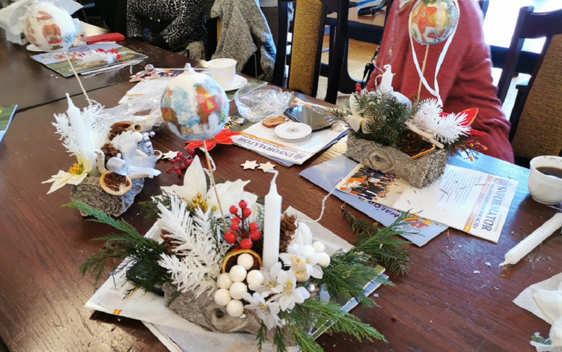 Panie uwijały się przy konstruowaniu świątecznych stroików