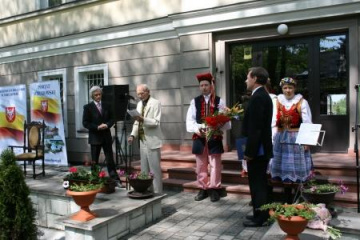 15 Maja 2009(...) którzy w kwietniu br. gościli swoich polskich rówieśników Młodzież i opiekunowie - Veronique Malterverne i Pascal Cousseau poznali popularny ,,ekonomik", zwiedzili Miechów i powiat miechowski. W planie jest wyjazd do Krakowa, Oświęcimia i Ojcowa. Ukoronowaniem szkolnego święta była wizyta Yannick'a Rio, zastępcy Konsula Generalnego w Krakowie, który przyczynił się do powstania wymiany uczniów. Francuski dyplomata był mile zaskoczony, że współpraca pomiędzy uczniami obu szkół nastąpiła tak szybko. W czasie okazjonalnego obiadu - wicekonsula, nauczycieli i uczniów z Francji, przedstawicieli Zarządu Powiatu oraz własnych uczniów i pedagogów - witała, także po francusku, Marzena Samborska, dyrektor szkoły. Starosta Mieczysław Bertek, powiedział, że najtrwalsze przyjaźnie zawierane są właśnie pomiędzy młodymi ludźmi. Francuscy goście zostali obdarowani folderami o powiecie miechowskim. Tłumaczem był Piotr Grządziel, szkolny nauczyciel języka francuskiego, a także inicjator współpracy z liceum w Longeron. Następnie wicekonsul i francuscy pedagodzy w towarzystwie starosty zwiedzili zespół pałacowy na mirowskim wzgórzu w Książu Wielkim (obecnie siedzibę Zespołu Szkół im. W.Witosa), gdzie wszyscy wpisali się do księgi pamiątkowej. Na zakończenie wizyty w Miechowie Francuzi zaznajomili się z bazyliką Grobu Bożego, po której oprowadzał przewodnik Włodzimierz Barczyński.