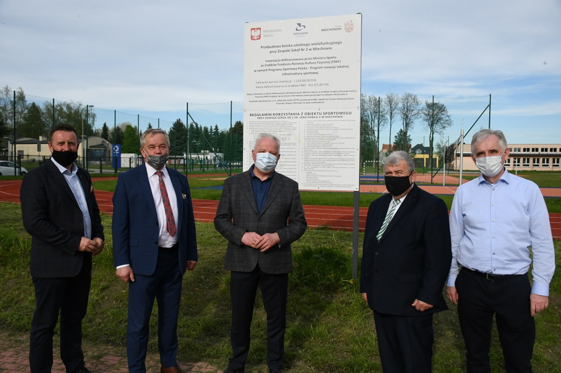 Wiceminister Jacek Osuch z włodarzami Powiatu Miechowskiego na nowym boisku ZS Nr 2