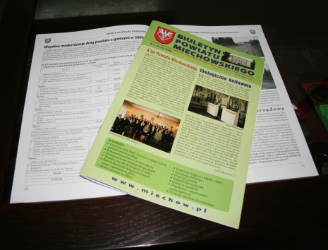 (...) W nowym wydaniu zamieszczono informacje dotyczące szerokiego wachlarza tematów związanych z powiatem i urzędem za minione półrocze. Czytelnicy znajdą relację z uroczystej sesji Rady Powiatu poświęconej X-leciu powiatu miechowskiego. Jej dopełnieniem jest skrót wiadomości o historii powstawania i kształtowania się struktur powiatowych w dziejach Polski, w tym oczywiście powiatu miechowskiego. W kontekście jubileuszu przypomniano również ważniejsze dokonania władz i samorządu powiatu w dekadzie 1998-2008. Jak ukształtował się budżet powiatowy na 2009 rok? O tym informują liczbowe zestawienia, diagramy i tabele. Odrębne miejsce zawierają relacje związane z drogownictwem. Czytamy zatem o wspólnych powiatowo-gminnych inwestycjach drogowych w 2008r. i poznajemy plany tych działań obejmujących modernizacje powiatowych odcinków dróg na obecny rok. Są też wiadomości o inwestycjach powiatu dofinansowywanych ze środków unijnych w ramach MRPO. Jedna dotyczy udrożnienia systemu komunikacyjnego powiatu miechowskiego - cz. II, zaś druga budowy sali gimnastycznej przy ZS Nr 1 w Miechowie. Odrębna pula tekstów informuje o ukończonych przez powiat inwestycjach oświatowych i ekologicznych, konsekwentnie prowadzonych przez Zarząd Powiatu. Czytamy o nowej kotłowni gazowej w Bursie Szkolnej, zmodernizowanym zapleczu kuchennym w miechowskim ,,ekonomiku" i poprawie funkcjonalności, bezpieczeństwa i estetyki w ZS Nr 2. Czytelnicy zapoznają się także z obecnymi efektami współpracy powiatu z organizacjami pozarządowymi. W numerze znalazła się nowa rubryka poświęcona promocji powiatu, a w niej relacje z wystawy miechowskiego malarstwa w Konsulacie Polskim w Brukseli i nagrywania audycji o powiecie przez Radio Kraków. Tradycyjnie nie zabrakło kroniki wydarzeń i wizyt gości w starostwie. Numer zamyka prezentacja kolejnego wydziału urzędu - Oświaty, Kultury i Sportu. Większość tekstów wzbogacają fotografie. Trzeci numer BPM w nakładzie 3 000 bezpłatnych egzemplarzy jest kolportowany w Miechowie i powiecie miechowskim.
