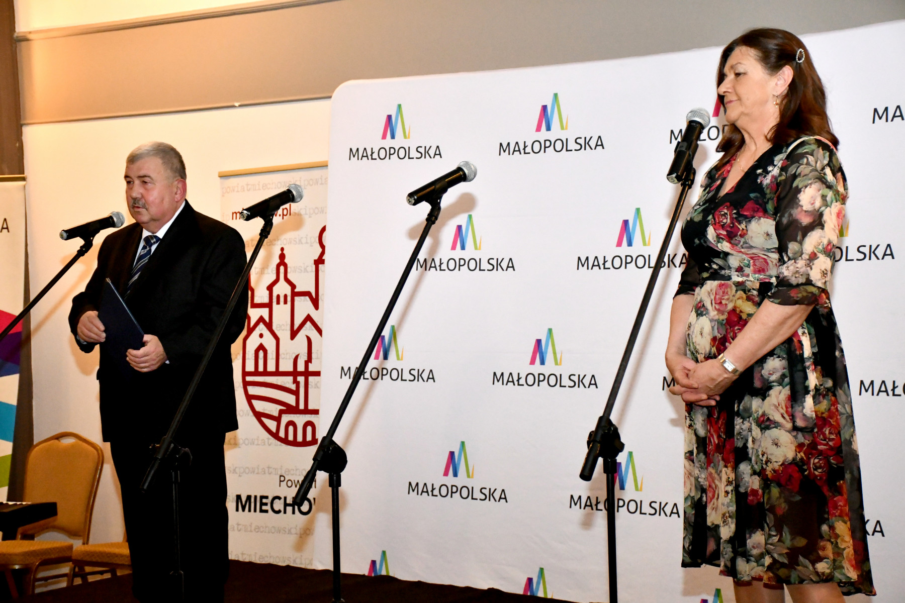 Gospodarze operetkowego wieczoru w Dosłońcu - Starosta Jacek Kobyłka i Sekretarz Maria Sztuk