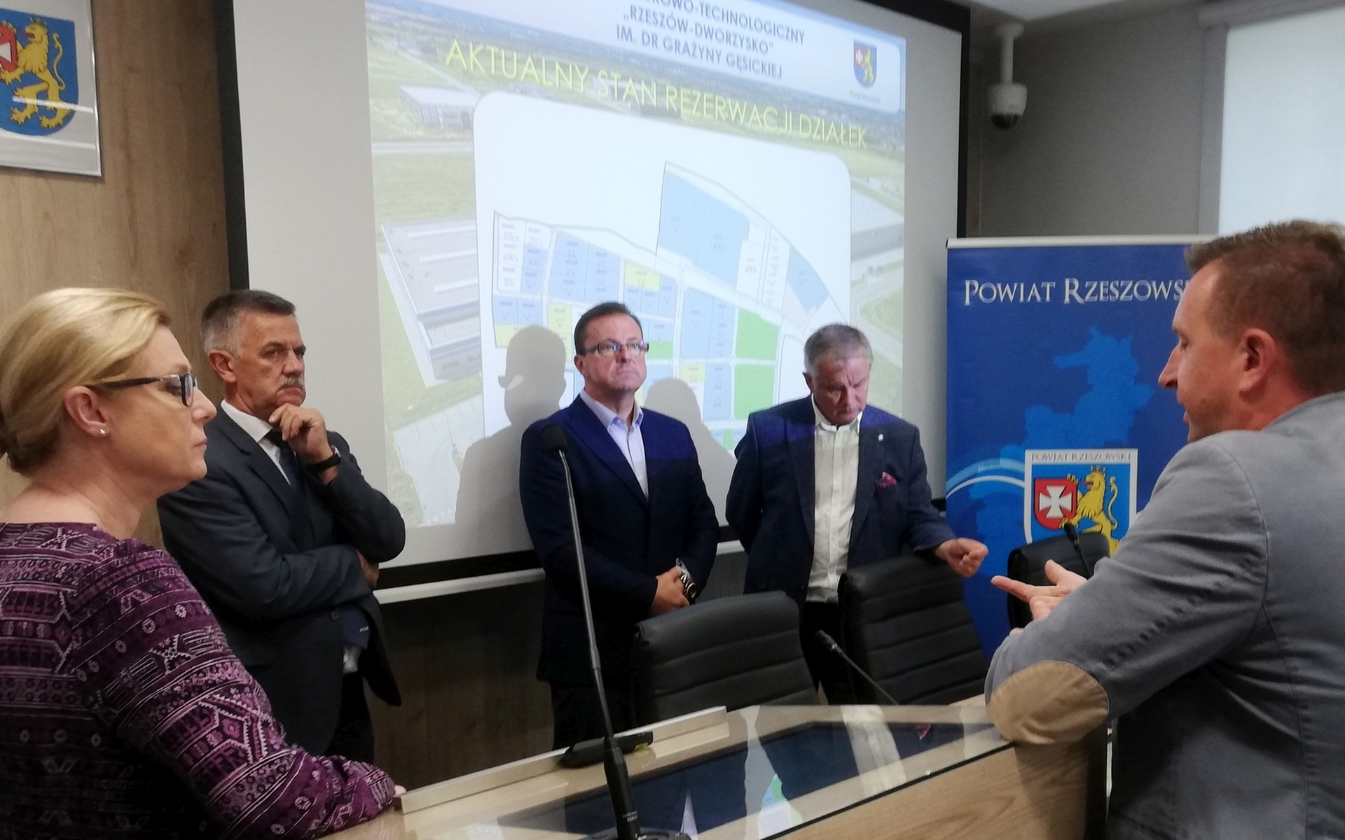 Kierownictwo Starostwa Miechowskiego oraz Rady Powiatu wraz z wójtem Książa Wielkiego Markiem Szopą, wizytowali w środę, 22 lipca, Park Naukowo-Technologiczny w Rzeszowie, którego organizatorem jest miejscowe starostwo. Na 84 hektarach wyposażonych w pełną infrastrukturę, co kosztowało blisko 80 mln zł (przy dofinansowaniu z UE na poziomie 75 proc.), funkcjonuje tu już 21 firm zatrudniających ogółem 3 tys. osób. Każde z tych przedsiębiorstw zróżnicowanych branż zapłaciło za hektar gruntu wykupionego na własność średnio po 2 mln zł.