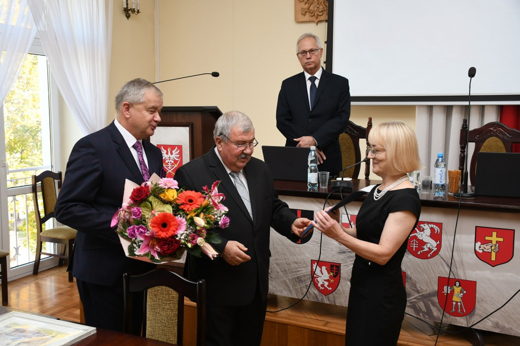 44. sesja Rady Powiatu Miechowskiego zwołana na 13 października, która poświęcona była oświacie, rozpoczęła się uroczystym i podniosłym akcentem. Starosta Jacek Kobyłka i Przewodniczący Krzysztof Świerczek kwiatami i upominkiem podziękowali za 44-letnią pracę odchodzącej na emeryturę Marii Słuszniak, dyr. Powiatowej i Miejskiej Biblioteki Publicznej im. Marii Fihel w Miechowie.