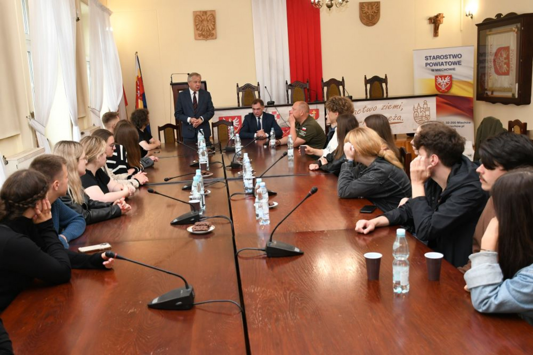 Wojewoda Małopolski ze studentami z wizytą u miechowskich starostów