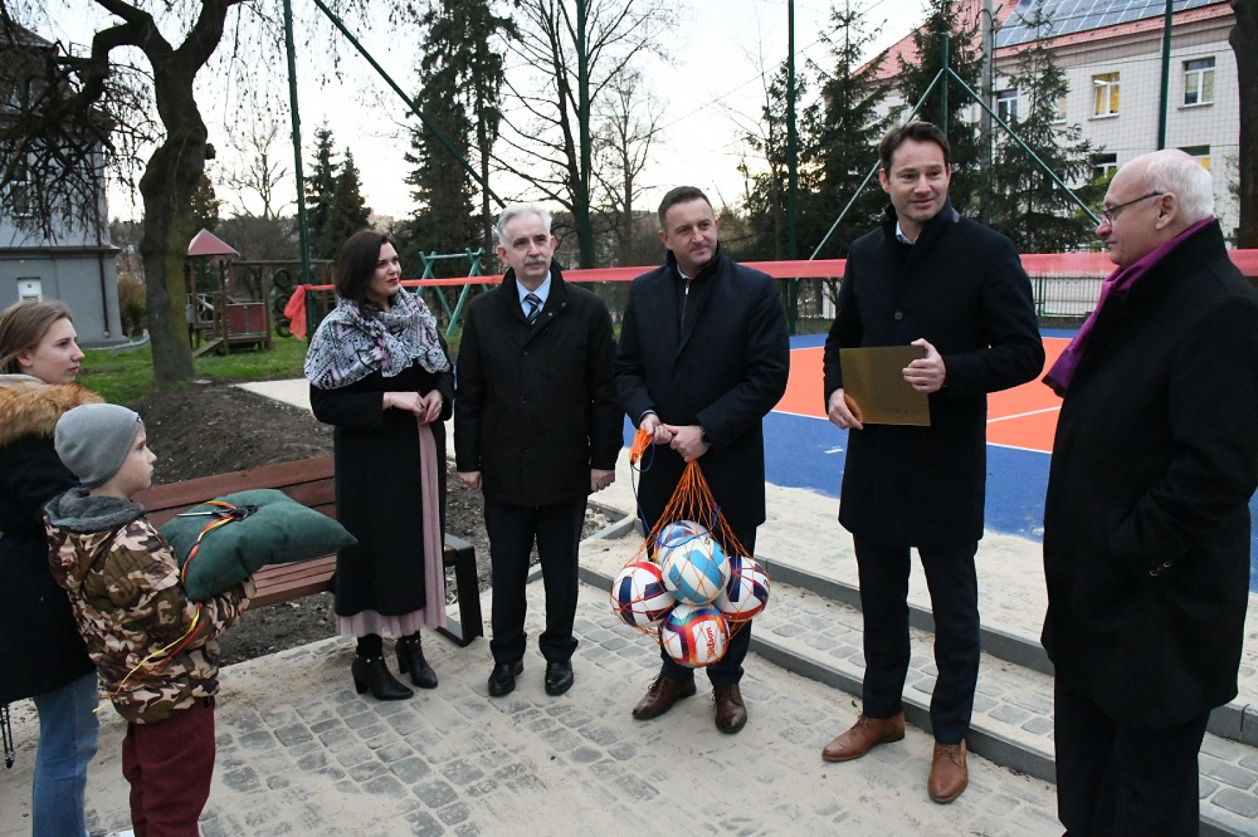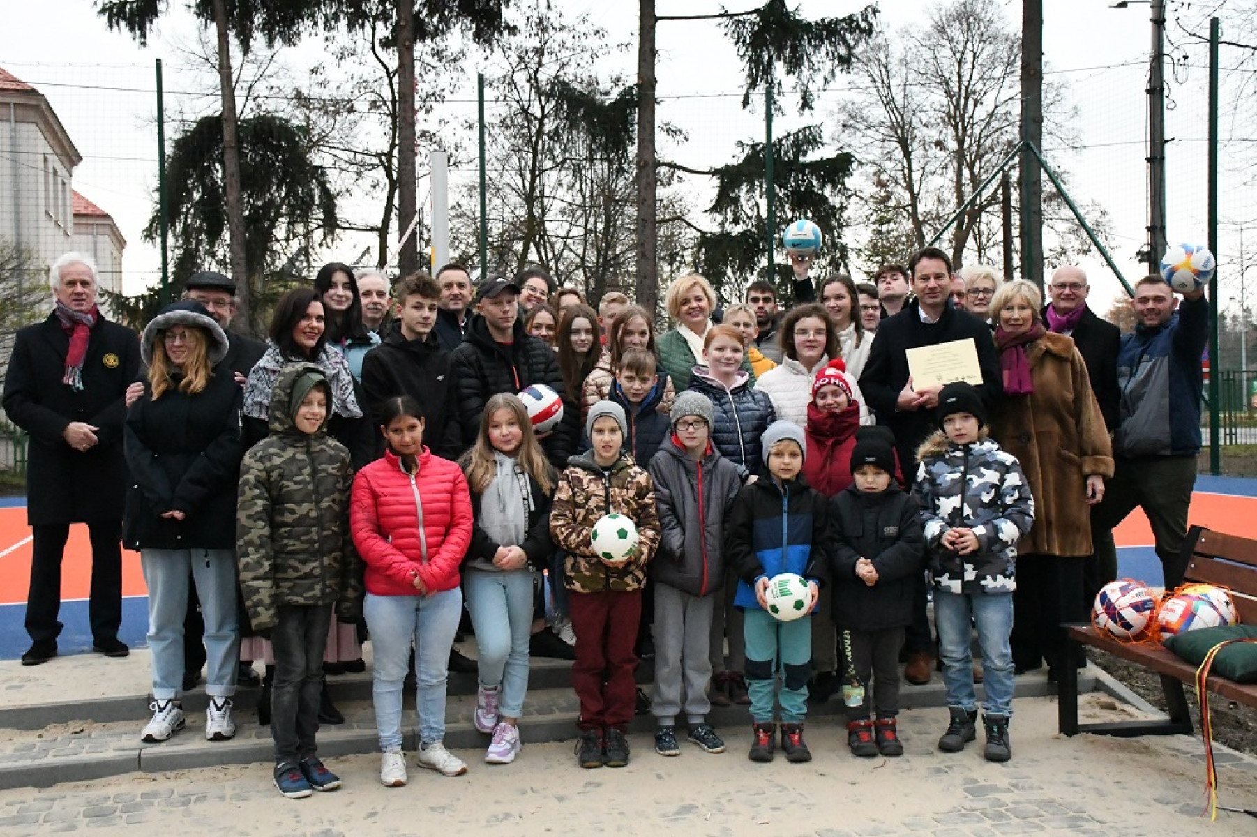 Pamiątkowa fotografia przy nowym boisku CAPS w Miechowie