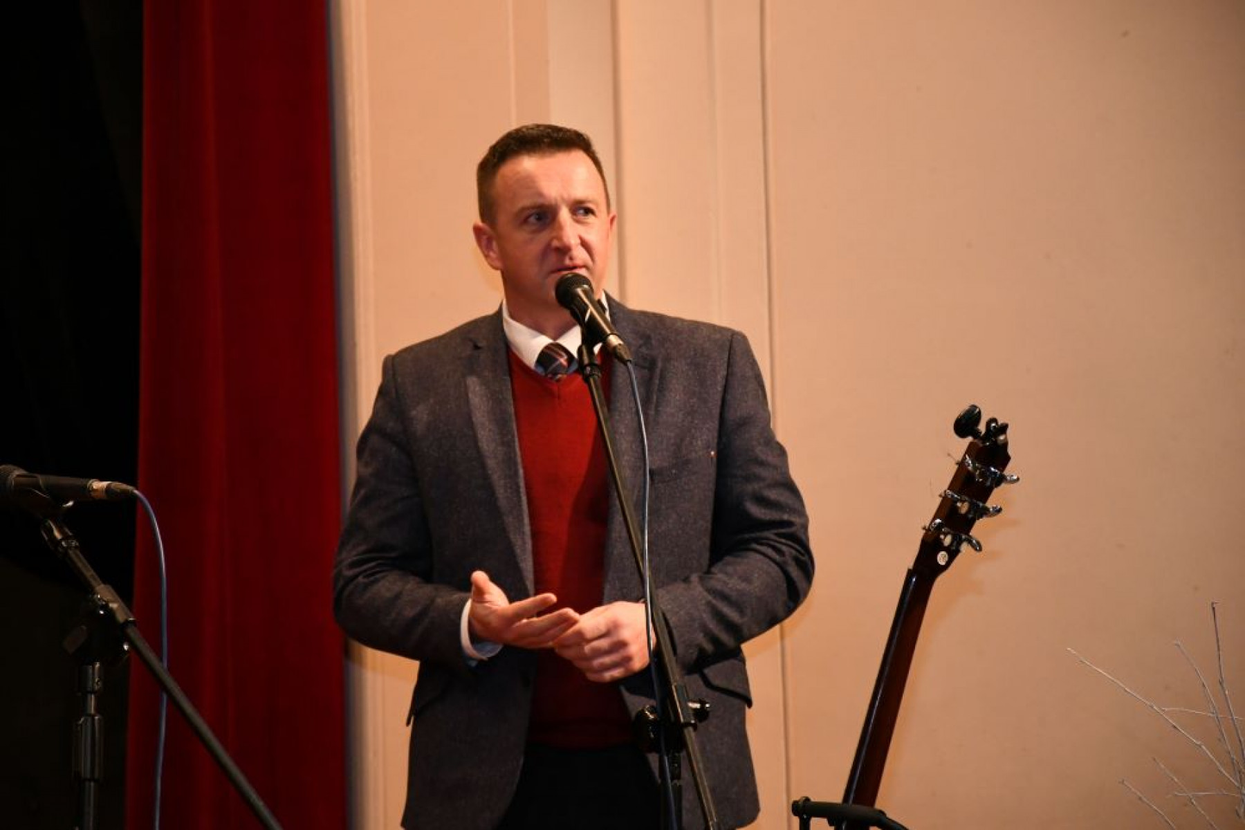 Wicestarosta Paweł Osikowski gratuluje organizacji X Festiwalu Kolęd i Pastorałek ŚDS-ów w Miechowie
