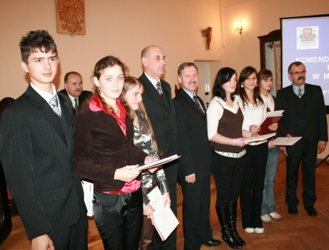 za dziewięć miesięcy 2008r. przedstawili - podinsp. Bogusław Słupczyński, komendant powiatowy Policji i bryg. Grzegorz Kosiński, komendant powiatowy Państwowej Straży Pożarnej. Informację o stanie sanitarno-higienicznym i zabezpieczeń przeciwepidemicznych w powiecie przekazał Florian Kącki, powiatowy inspektor sanitarny. W dyskusji nt. powyższych spraw szczególnie akcentowano sprawę bezpieczeństwa drogowego i jeszcze skuteczniejszej współpracy służb, straży, inspekcji i samorządów. Sprawozdanie z realizacji uchwał rady i działalności Zarządu Powiatu w okresie międzysesyjnym omówił starosta Mieczysław Bertek. W trakcie obrad wyróżniono najlepszych uczniów szkół ponadgimnazjalnych - stypendystów Prezesa Rady Ministrów. Zostali nimi: Izabela Peroń - LO, Agnieszka i Beata Turek - ZS Nr 1, Barbara Kabalak i Joanna Peroń - ZS Nr 2 (szkoły w Miechowie) oraz Dawid Rachwał i Michał Szumerowski z ZS w Książu Wielkim. Radni podjęli jedenaście uchwał, m.in. w sprawach pomocy społecznej (dodatkowe środki z PFRON na rzecz osób niepełnosprawnych), rozwoju gospodarczego (modernizacje dróg), oświaty (inwestycja ekologiczna i program stypendialny) i budżetu powiatu. W ,,uchwałach drogowych" stwierdzono zabezpieczenie środków finansowych w przyszłorocznym budżecie w wysokości 50% wartości zadań na modernizacje dwóch odcinków dróg powiatowych przy trasach: Bukowska Wola-Działoszyce i Bryzdzyń-Tunel-Miechów, które będą również współfinansowane w tym samym procentowym udziale przez gminy Słaboszów, Kozłów i Miechów w ramach ,,Narodowego Programu Przebudowy Dróg Lokalnych 2008-2011". Na zakończenie sesji samorządowcy powiatowi uczcili pamięć zmarłego Krzysztofa Zegarka, radnego dwóch kadencji i członka Zarządu Powiatu.