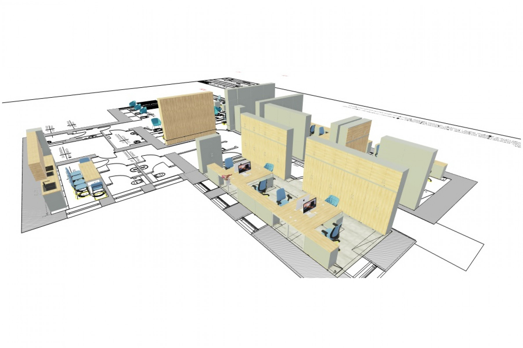 Wizualizacja wnętrz nowej siedziby Wydziału Komunikacji w Miechowie