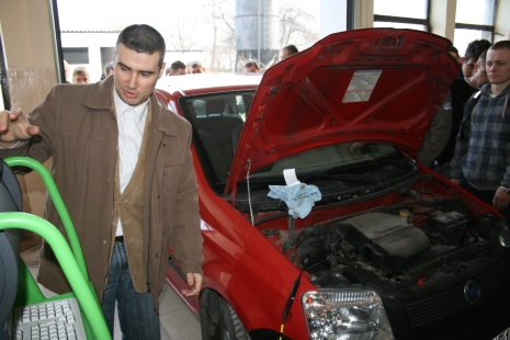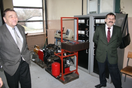 Spotkanie uczniów, nauczycieli i gości było również okazją do pokazania stanowiska silnikowego w ,,Laboratorium toksyczności i głośności silników spalinowych”, które funkcjonuje w szkole z inicjatywy radomskiej PWSOŚ. Prof. J. Jaskólski i jego asystent Leszek Konstantynowicz dokonali praktycznego pokazu działania standardowego 4 – suwowego silnika, który na potrzeby ćwiczeniowe i badawcze umożliwia analizę parametrów pracy ww. jednostki napędowej pod kątem ochrony środowiska.
