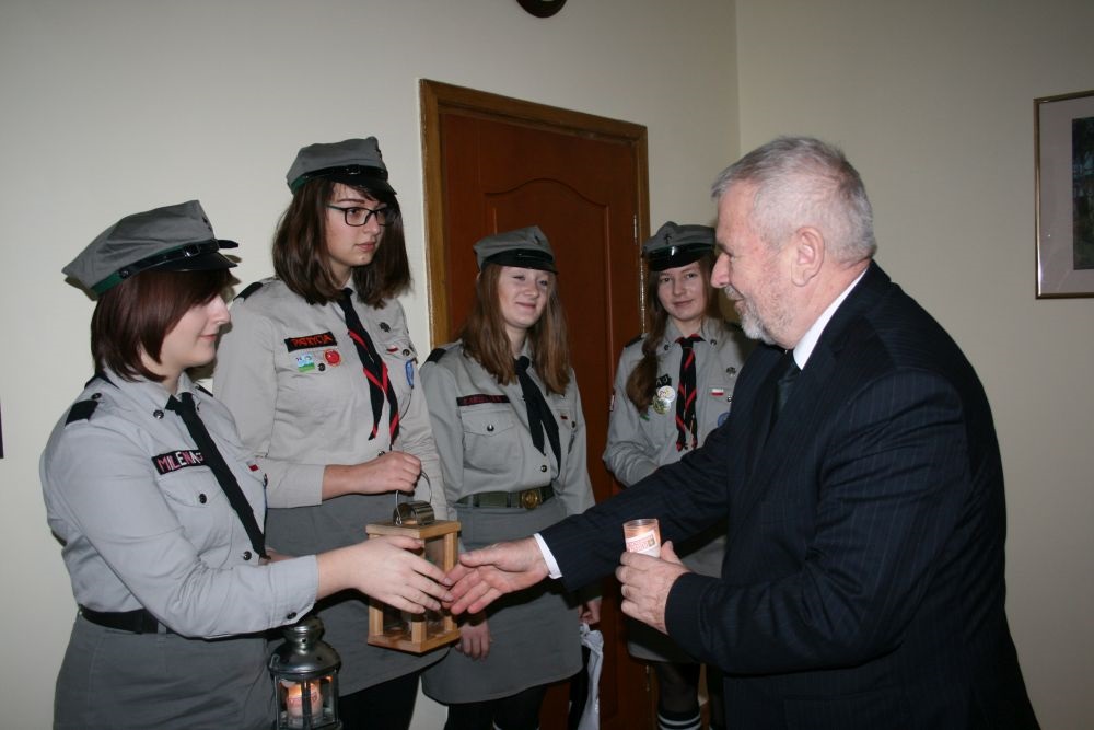 Ogień betlejemski, przywieziony w tym roku z Austrii, do starostwa przyniosły harcerki z Drużyny Wędrowniczej 3DSH im. R.Baden-Powella, która funkcjonuje w Liceum Ogólnokształcącym w Miechowie. Tradycyjny symbol świąt, pokoju i stabilizacji harcerki przekazały staroście Marianowi Gamratowi, z którym wymieniły życzenia świąteczne i noworoczne.